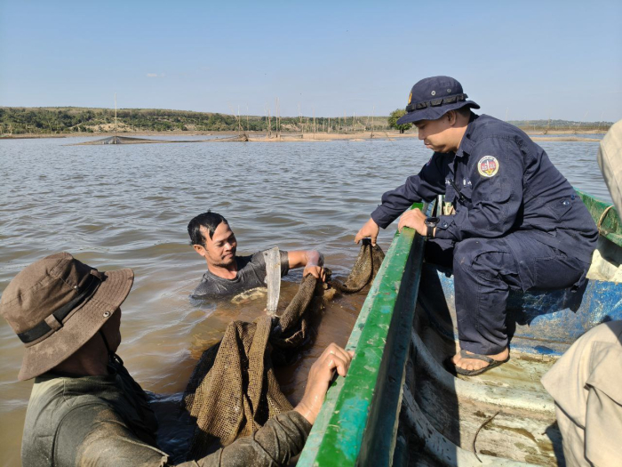 ដោយមានការណែនាំពីឯកឧត្តមរដ្ឋលេខាធិការ ហាស់ សារ៉េត នៅថ្ងៃទី៣១ ខែធ្នូ ឆ្នាំ២០២៥ ឯកឧត្តម ទឹម បូរក្ស អនុរដ្ឋលេខាធិការក្រសួងកសិកម្ម រុក្ខាប្រមាញ់ និងនេសាទ បានអញ្ជើញដឹកនាំកម្លាំងខណ្ឌរដ្ឋបាលជលផលកំពង់ចាម ចុះត្រួតពិនិត្យ បង្រ្កាបបទល្មើសនេសាទ និងផ្សព្វផ្សាយច្បាប់ស្តីពីជលផល ការធ្វើអាជីវកម្មនេសាទដល់ប្រជានេសាទនៅតាមដងទន្លេងមេគង្គ ក្នុងក្រុងកំពង់ចាម ស្រុកកោះសូទិន និងស្រុកកងមាស ខេត្តកំពង់ចាម។ ក្នុងដំណើរនេះ ក៏មានកិច្ចសហការផងដែរពីអាជ្ញាធរស្រុកកំពង់សៀម កម្លាំងកងរាជអាវុធហត្ថស្រុកកំពង់សៀម អាជ្ញាធរឃុំកៀនជ្រៃ ប៉ុស្តិ៍នគរបាលរដ្ឋបាលកៀនជ្រៃ និងសហគមន៍នេសាទដំរីឆ្លង។