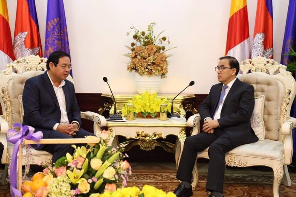 ឯកឧត្តមរដ្ឋមន្ត្រីបានអនុញ្ញាតឲ្យលោក Truong Minh Trung នាយករងនៃសម្ព័ន្ធឧស្សាហកម្មកៅស៊ូវៀតណាម VRG និងសហការីចូលសម្តែងការគួរសម និងពិភាក្សាការងារស្តីពីវឌ្ឍនភាពនៃការអនុវត្តគម្រោងវិនិយោគដាំដុះដំណាំកៅស៊ូនៅកម្ពុជា