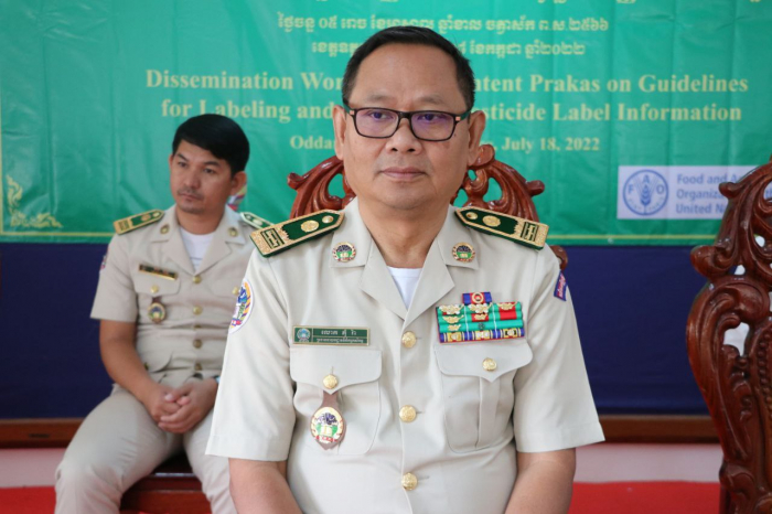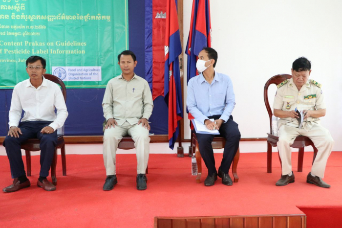ក្រោមជំនួយឧបត្ថម្ភហិរញ្ញវត្ថុពីអង្គការស្បៀងអាហារ និងកសិកម្មនៃសហប្រជាជាតិ ( FAO ) និងទទួលបានការអនុញ្ញាតដ៍ខ្ពង់ខ្ពស់ពី ឯកឧត្តម វេង សាខុន រដ្ឋមន្ត្រីក្រសួងកសិកម្ម រុក្ខាប្រមាញ់និងនេសាទ នាព្រឹកថ្ងៃចន្ទ ៥រោច ខែអាសាឍ ឆ្នាំខាល ចត្វាស័កព.ស២៥៦៦ ត្រូវនឹងថ្ងៃទី១៨ ខែកក្កដា ឆ្នាំ២០២២  នាយកដ្ឋាននីតិកម្មកសិកម្មនៃក្រសួងកសិកម្ម រុក្ខាប្រមាញ់ និងនេសាទ បានប្រារព្ធបើកសិក្ខាសាលាស្តីពីគោលការណ៍ណែនាំសម្រាប់ស្លាកសញ្ញាព័ត៌មាន និងគំរូស្លាកសញ្ញាព័ត៌មាននៃថ្នាំកសិកម្ម ។ ក្រោមអធិបតីភាពលោក ភុំ រ៉ា ប្រធាននាយកដ្ឋាននីតិកម្មកសិកម្ម លោកប្រធានមន្ទីរកសិកម្ម រុក្ខាប្រមាញ់ និងនេសាទ ខេត្តឧត្តរមានជ័យ និងមានការចូលរួមពី ពាណិជ្ជករ អាជីវករ និងអ្នកពាក់ព័ន្ធប្រមាណ៩០នាក់ ដោយបានអនុវត្តតាមគោលការណ៍ ៣កុំ ៣ការពារ ។ កម្មវិធីនេះរៀបចំនៅមន្ទីរកសិកម្ម រុក្ខាប្រមាញ់ និងនេសាទ ខេត្តឧត្តរមានជ័យ និងរៀបចំដោយនាយកដ្ឋាននីតិកម្មកសិកម្ម       នៃក្រសួងកសិកម្ម រុក្ខាប្រមាញ់ និងនេសាទ សហការជាមួយអង្គការស្បៀងអាហារ និងកសិកម្មនៃសហប្រជាជាតិ ( FAO ) ។