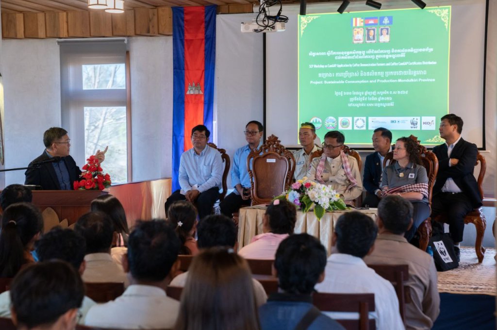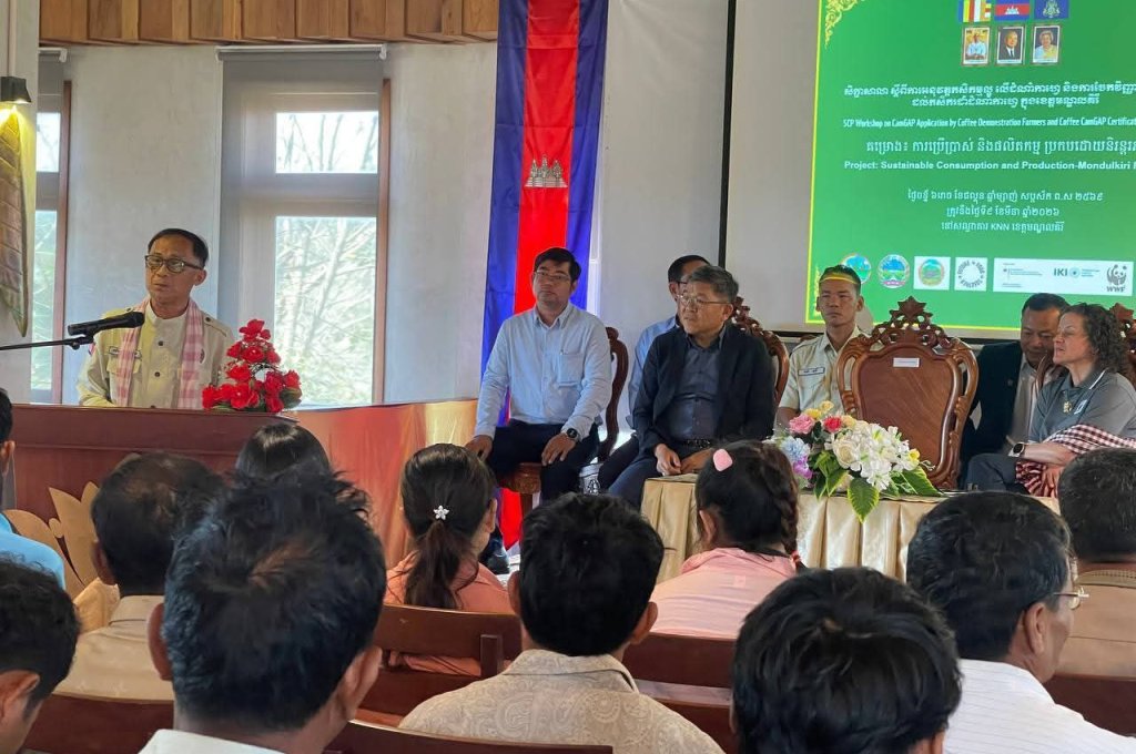 នៅថ្ងៃទី៩ ខែមីនា ឆ្នាំ២០២៦ ឯកឧត្តមបណ្ឌិត យ៉ង សាំង កុមារ រដ្ឋលេខាធិការក្រសួងកសិកម្ម រុក្ខាប្រមាញ់ និងនេសាទ បានអញ្ជើញជាអធិបតីភាព ក្នុងពិធីផ្តល់វិញ្ញាបនបត្រ CamGAP ជូនដល់កសិករអ្នកដាំកាហ្វេចំនួន២៦នាក់ នៅខេត្តមណ្ឌលគិរី។