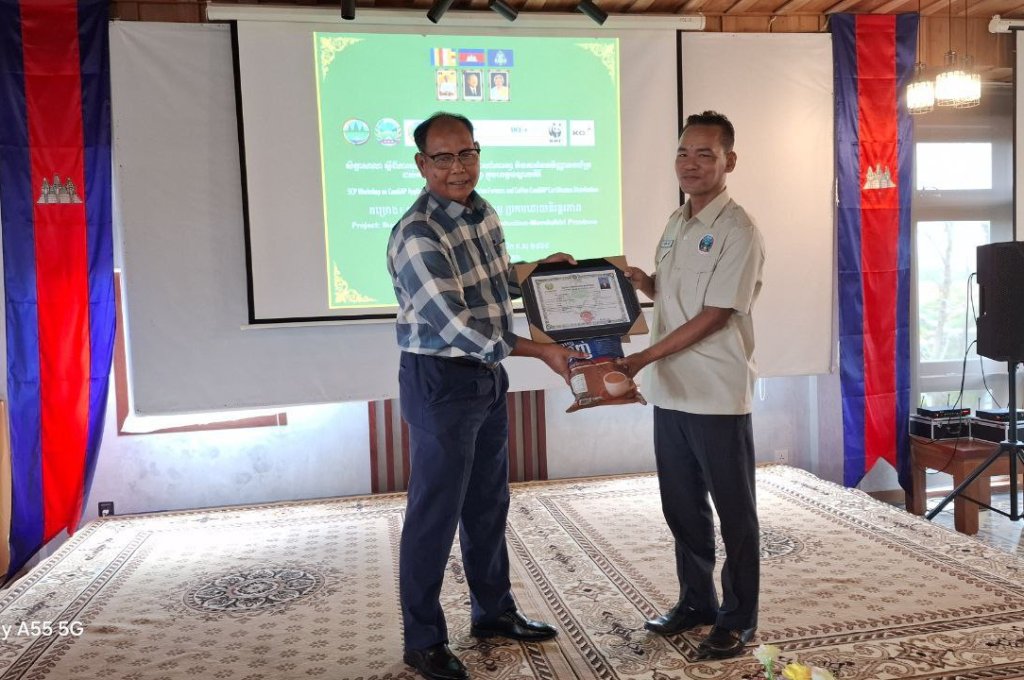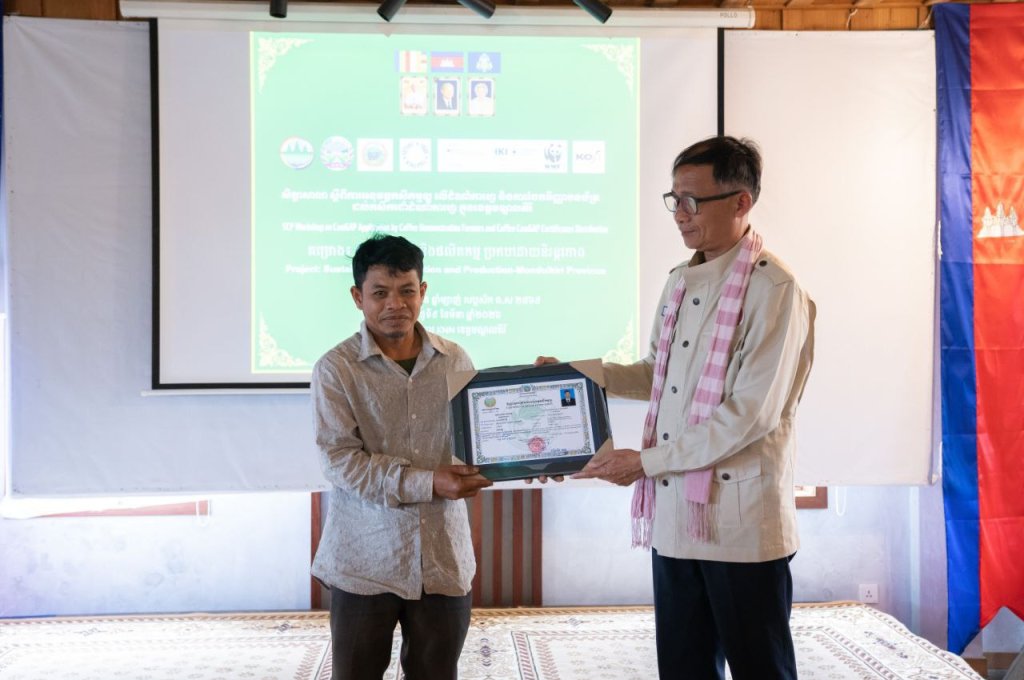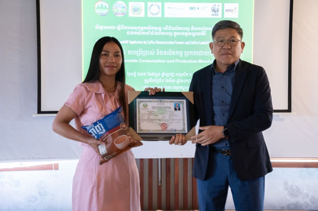 សូមបញ្ជាក់ថា កម្មវិធីផ្តល់វិញ្ញាបនបត្រ CamGAPនេះ ជាលទ្ធផលនៃការសហការរវាង អគ្គនាយកដ្ឋានកសិកម្ម មន្ទីរកសិកម្ម រុក្ខាប្រមាញ់ និងនេសាទ ខេត្តមណ្ឌលគិរី មន្ត្រីកសិកម្មឃុំ អង្គការWWF និងក្រុមហ៊ុន KOFI ក្នុងការជំរុញការផលិតកាហ្វេប្រកបដោយស្តង់ដារ និរន្តរភាព និងបង្កើនភាពធន់នឹងការផ្លាស់ប្តូរអាកាសធាតុ៕