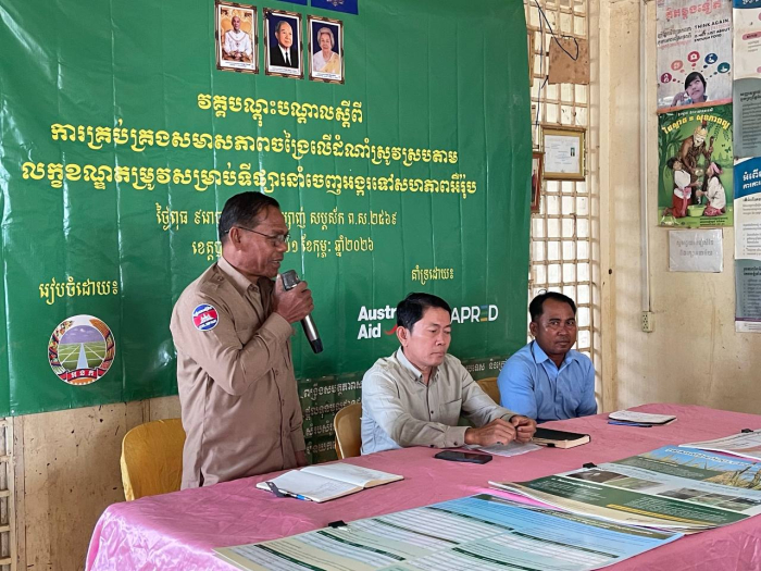 នៅថ្ងៃទី១១ ខែកុម្ភៈ ឆ្នាំ២០២៦ នាយកដ្ឋានការពារដំណាំ អនាម័យ និងភូតគាមអនាម័យ នៃអគ្គនាយកដ្ឋានកសិកម្ម ក្រោមការដឹកនាំរបស់លោកបណ្ឌិត ឌី សំអាន អនុប្រធាននាយកដ្ឋានការពារដំណាំ អនាម័យ និងភូតគាមអនាម័យ បានរៀបចំវគ្គបណ្តុះបណ្តាលស្តីពីការគ្រប់គ្រងសមាសភាពចង្រៃលើដំណាំស្រូវស្របតាមលក្ខខណ្ឌតម្រូវសម្រាប់ទីផ្សារនាំចេញអង្ករទៅកាន់សហភាពអឺរ៉ុប នៅសហគមន៍កសិកម្មទំនើបស្រូវស្រុកបាណន់ ខេត្តបាត់ដំបង ដោយមានការចូលរួមពីតំណាងមន្ទីរកសិកម្ម រុក្ខាប្រមាញ់ និងនេសាទខេត្តបាត់ដំបង លោកប្រធានការិយាល័យកសិកម្ម ធនធានធម្មជាតិ និងបរិស្ថានស្រុកបាណន់ មន្ត្រីកសិកម្មឃុំ និងសមាជិកសហគមន៍កសិកម្មទំនើបស្រូវស្រុកបាណន់ ខេត្តបាត់ដំបង សរុបប្រមាណ ៥០រូប។