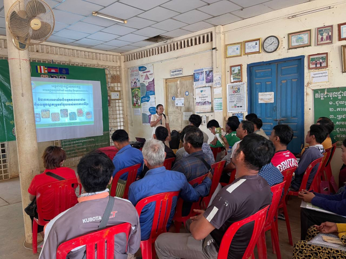 វគ្គបណ្តុះបណ្តាលស្តីពីការគ្រប់គ្រងសមាសភាពចង្រៃលើដំណាំស្រូវស្របតាមលក្ខខណ្ឌតម្រូវសម្រាប់ទីផ្សារនាំចេញអង្ករទៅកាន់សហភាពអឺរ៉ុប នៅសហគមន៍កសិកម្មទំនើបស្រូវស្រុកបាណន់ ខេត្តបាត់ដំបង