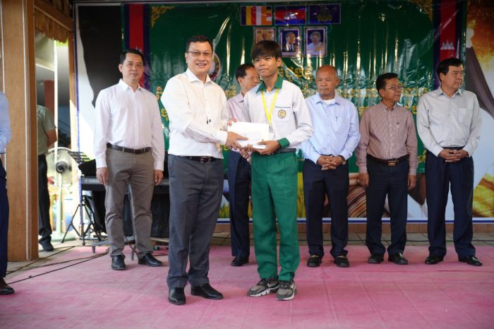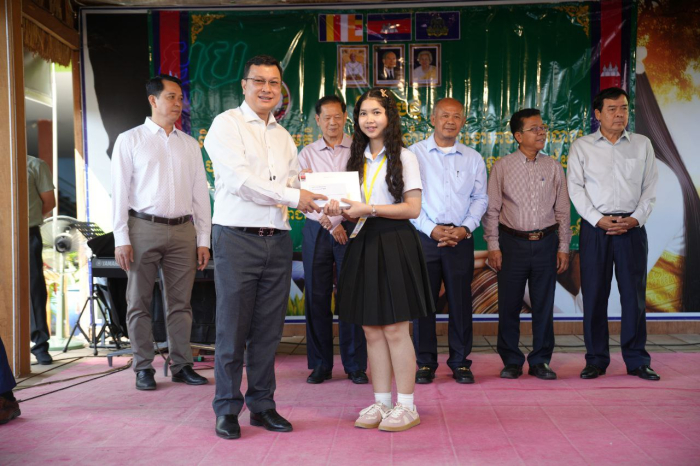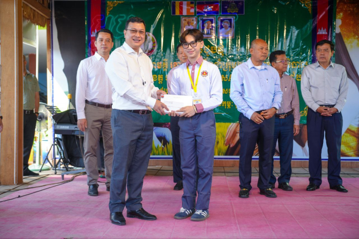 ជាទីបញ្ចប់ ឯកឧត្តមរដ្ឋមន្ដ្រី បានប្រគល់ជូននូវរង្វាន់កុំព្យូទ័របន្ទះ(Tablet) ដែលជាអំណោយដ៏ថ្លៃថ្លារបស់ សម្តេចមហាបវរធិបតី ហ៊ុន ម៉ាណែត និងលោកជំទាវបណ្ឌិត ពេជ ចន្ទមុន្នី ដល់សិស្សនិទ្ទេស A និងលេីកទឹកចិត្តដល់លោកគ្រូ អ្នកគ្រូ អាណាព្យាបាលទាំងអស់ បន្តខិតខំបង្ហាត់បង្រៀន យកចិត្តទុកដាក់ និងកសាងធនធានមនុស្សបន្ថែមសម្រាប់សង្គមជាតិ៕