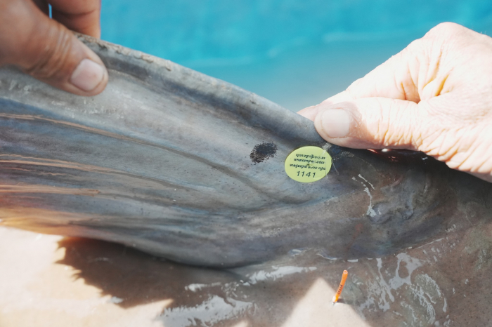 សូមបញ្ជាក់ថា ត្រីរាជ១ក្បាលនេះ ធ្លាប់ត្រូវបានក្រុមការងារលែងចូលទៅក្នុងដែនទឹកធម្មជាតិវិញ កាលពីពេលកន្លងទៅរួចហើយ ដោយសារត្រីនេះមានស្លាកស្មាមបំពាក់ស្លាកសញ្ញាសំគាល់ ប៉ុន្តែស្លាកសញ្ញាសំគាល់នោះបានរបូតចេញពីខ្លួនត្រីបាត់។