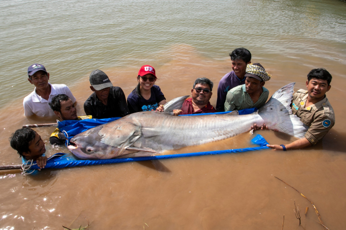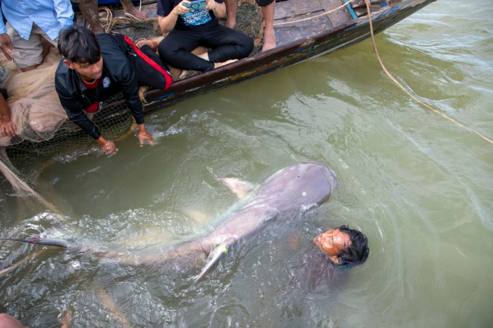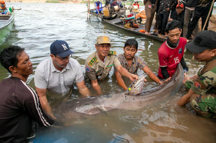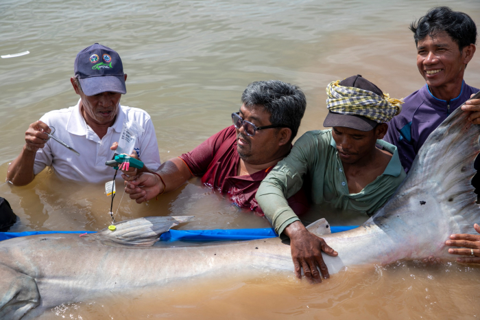 វិទ្យាស្ថានស្រាវជ្រាវ និងអភិវឌ្ឍន៍ជលផលទឹកសាប នៃរដ្ឋបាលជលផល សហការជាមួយគម្រោងអច្ឆរិយភាពទន្លេមេគង្គ បានលែងត្រីរាជចំនួន ៤ក្បាល ចូលទៅក្នុងបឹងធម្មជាតិ