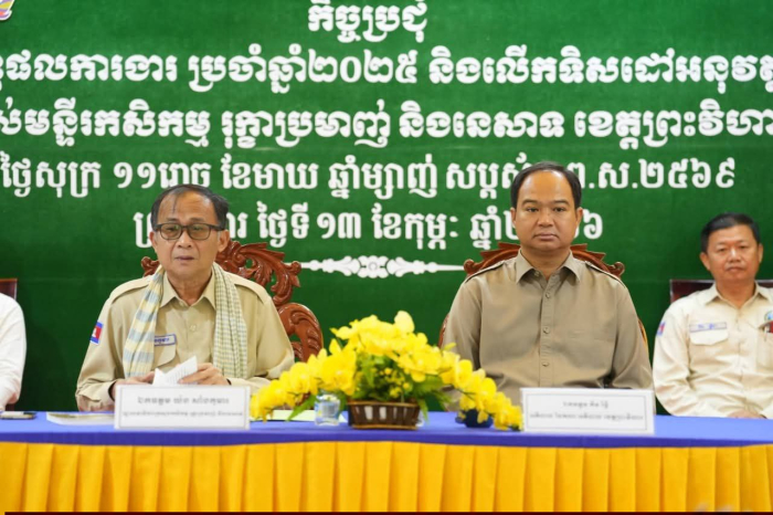 នៅថ្ងៃទី១៣ ខែកុម្ភៈ ឆ្នាំ២០២៦ ឯកឧត្តមបណ្ឌិត យ៉ង សាំង កុមារ រដ្ឋលេខាធិការក្រសួងកសិកម្ម រុក្ខាប្រមាញ់ និងនេសាទ និងឯកឧត្តម គីម រិទ្ធី អភិបាលនៃគណៈអភិបាលខេត្តព្រះវិហារ បានអញ្ជើញជាអធិបតីភាពក្នុងកិច្ចប្រជុំ «បូកសរុបលទ្ធផលការងារប្រចាំឆ្នាំ២០២៥ និងលើកទិសដៅការងារឆ្នាំ២០២៦» របស់មន្ទីរកសិកម្មខេត្តព្រះវិហារ។