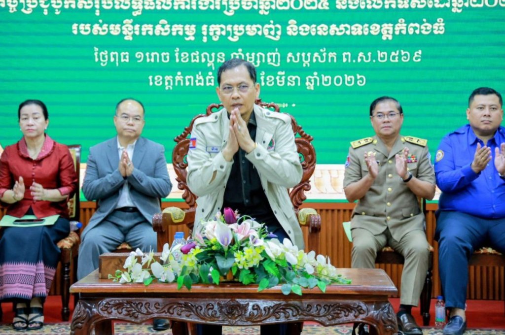 នៅថ្ងៃទី៤ ខែមីនា ឆ្នាំ២០២៦ ឯកឧត្តមរដ្ឋលេខាធិការ ម៉ាន សុគ្រី រដ្ឋលេខាធិការក្រសួងកសិកម្ម រុក្ខាប្រមាញ់ និងនេសាទ បានអញ្ជើញជាអធិបតីភាព ក្នុងកិច្ចប្រជុំបូកសរុបលទ្ធផលការងារកសិកម្ម រុក្ខាប្រមាញ់ និងនេសាទ ប្រចាំឆ្នាំ២០២៥ និងលើកទិសដៅការងារឆ្នាំ២០២៦ របស់មន្ទីរកសិកម្ម រុក្ខាប្រមាញ់ និងនេសាទខេត្តកំពង់ធំ។