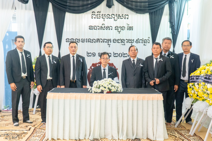 នាថ្ងៃទី២៥ ខែមករា ឆ្នាំ២០២៦ ឯកឧត្តមរដ្ឋលេខាធិការប្រចាំការ អ៊ឹម ស៊ីថុល តំណាងដ៏ខ្ពង់ខ្ពស់ ឯកឧត្តម ឌិត ទីណា រដ្ឋមន្រ្តីក្រសួងកសិកម្ម រុក្ខាប្រមាញ់ និងនេសាទ និងជាប្រធានក្រុមការងាររាជរដ្ឋាភិបាលចុះមូលដ្ឋានខេត្តបន្ទាយមានជ័យ បានអញ្ជើញដឹកនាំប្រតិភូក្រសួងកសិកម្ម រុក្ខាប្រមាញ់ និងនេសាទ ចូលរួមគោរពវិញ្ញាណក្ខន្ធសពឧបាសិកា ឡុង តៃ ត្រូវជាម្តាយក្មេក ឯកឧត្តម អ៊ុំ រាត្រី អភិបាល នៃគណៈអភិបាលខេត្តបន្ទាយមានជ័យ និងជាម្តាយបង្កើត លោកជំទាវ ជ័យ ណារី អ៊ុំរាត្រី ដែលបានទទួលមរណភាពក្នុងជន្មាយុ ៩៧ឆ្នាំ ដោយជរាពាធ នៅក្រុងសិរីសោភ័ណ ខេត្តបន្ទាយមានជ័យ៕