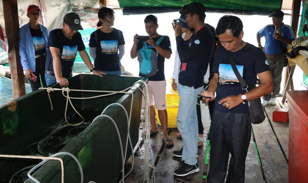 ថ្ងៃទី១២ ខែវិច្ឆិកា ឆ្នាំ២០១៨៖ នាយកដ្ឋានអភិវឌ្ឍវារីវប្បកម្ម នៃរដ្ឋបាលជលផល បានដឹកនាំសិក្ខាកាមនៃវគ្គបណ្តុះបណ្តាលក្រៅប្រទេសស្តីពី បច្ចេកវិទ្យាវារីវាប្បកម្មសម្រាប់ប្រទេសកម្ពុជា ចុះទស្សនកិច្ទសិក្សាផ្ទាល់អំពីការចិញ្ចឹមត្រីក្នុងបែ ស្ថិតនៅក្នុងខេត្តព្រះសីហនុ។ ហើយអំឡុងពេលនៃការចុះទស្សកិច្ចសិក្សានេះ លោកសាស្រ្តាចារ្យ Chen Xu ជាអ្នកជំនាញបច្ចេទេសវារីវប្បកម្មសមុទ្រ មកពីវិទ្យាស្ថានសាគរសាស្ត្រ ខេត្តហ្វូចៀន នៃសាធារណរដ្ឋប្រជាមានិតចិន បានផ្តល់ដំបូន្មានបច្ចេកទេសដែលជាគន្លឹះសំខាន់ៗដល់សិក្ខាកាម ជាពិសេសកសិករចិញ្ចឹមត្រីផ្ទាល់។