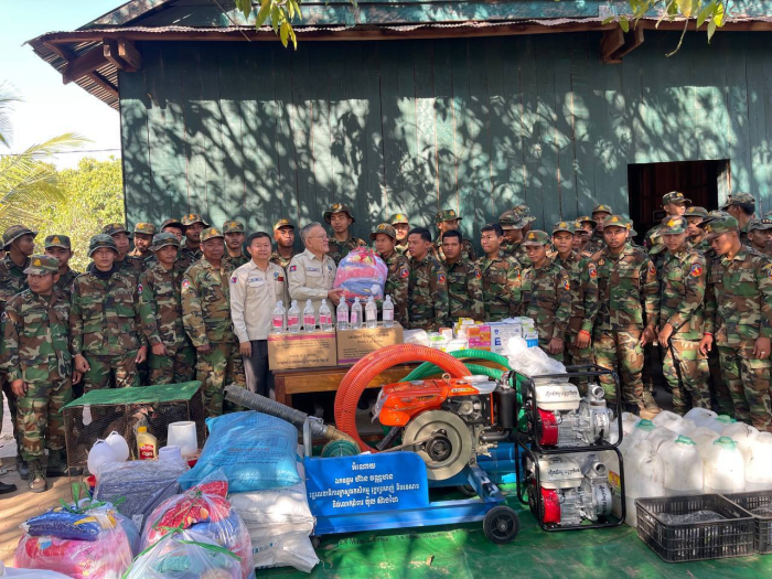 ទន្ទឹមនឹងនោះដែរ ឯកឧត្ដមបណ្ឌិត ក៏បានឧបត្ថម្ភជាសម្ភារៈ បរិក្ខារសម្រាប់ប្រើប្រាស់ និងជំរុញផលិតកម្មស្បៀងផ្គត់ផ្គង់កងទ័ព (ម៉ាស៊ីនបូមទឹក ទុយោនិងបរិក្ខាសម្រាប់រៀបចំប្រព័ន្ធស្រោចស្រព ពូជបន្លែសំខាន់ៗ កូនត្រី កូនកង្កែបពូជ មាន់ពូជ ចំណីសត្វ ថ្នាំសង្កូវសំខាន់ៗ ) នៅក្នុង មូលដ្ឋានកងទ័ព ដើម្បីជាការចូលរួមលើកទឹកចិត្ត និងបង្ហាញការគាំទ្រចំពោះការលះបង់ និងការខិតខំបំពេញភារកិច្ចដ៏ថ្លៃថ្នូររបស់កងទ័ព ក្នុងការការពារសន្តិសុខ សុវត្ថិភាព និងសុខសន្តិភាពជូនជាតិ និងប្រជាពលរដ្ឋ។ បន្ថែមពីនេះទៀត នេះមិនត្រឹមតែជាការឧបត្ថម្ភជាសម្ភារៈប៉ុណ្ណោះទេ ប៉ុន្តែថែមទាំងជាការបង្ហាញពីសាមគ្គីភាព ក្តីអរគុណ និងការយកចិត្តទុកដាក់ចំពោះកងទ័ព ដែលជាបង្គោលសំខាន់នៃប្រទេសជាតិ។ ក្នុងនោះផងដែរ ឯកឧត្ដមបណ្ឌិត ក៏បានចាត់មន្ទីរកសិកម្មខេត្ដ និងមន្ត្រីក្រុមការងារគម្រោង CaWSIP បន្តពិនិត្យលទ្ធភាពជួយបន្ត គាំទ្របំពេញបន្ថែម ដោយផ្តល់ហេដ្ឋារចនាសម្ព័នគាំទ្រមាន ផ្ទះសំណាញ់ ស្រះទឹក ប្រព័ន្ធស្រោចស្រព និងធាតុចូល ដើម្បីលើកកម្ពស់សមត្ថភាពជំនាញបច្ចេកទេសលើការងារផលិតកម្មបន្លែ ការចិញ្ចឹមសត្វ ដើម្បីផ្គត់ផ្គង់កងទ័ពនៅក្នុងអង្គភាព៕