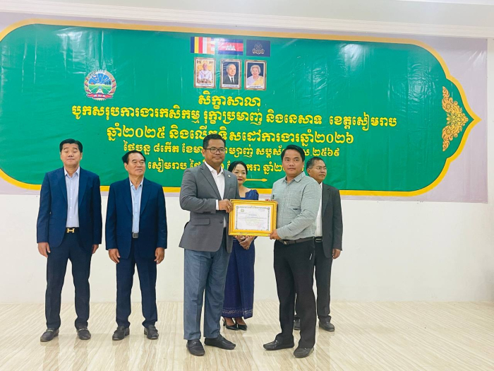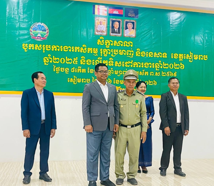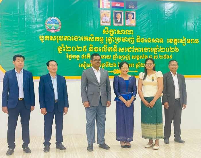 នៅថ្ងៃទី២៦ ខែមករា ឆ្នាំ២០២៦ ឯកឧត្តម ឃុន សាវឿន រដ្ឋលេខាធិការ​ក្រសួង​កសិកម្ម រុក្ខាប្រមាញ់ និងនេសាទ អញ្ជើញជាអធិបតីភាព ក្នុង​សិក្ខា​​សាលាបូកសរុបលទ្ធផលការងារឆ្នាំ២០២៥ និងលើកទិសដៅការងារ​ឆ្នាំ២០២៦  របស់មន្ទីរកសិកម្ម រុក្ខាប្រមាញ់ និងនេសាទខេត្តសៀមរាប។