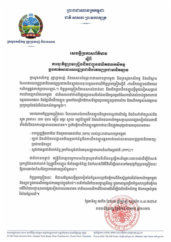 រាជធានីភ្នំពេញ ថ្ងៃអាទិត្យ ទី២៥ ខែមករា ឆ្នាំ២០២៦