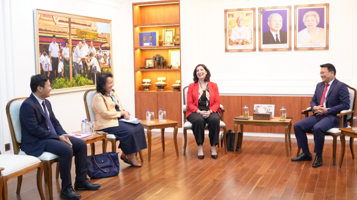 ឯកឧត្តមរដ្ឋមន្ត្រី ឌិត ទីណា ទទួលជួបសម្តែងការគួរសមជាមួយលោកស្រី Tania Meyer នាយកប្រចាំប្រទេសនៃធនាគារពិភពលោក​ (The World Bank) ប្រចាំកម្ពុជា