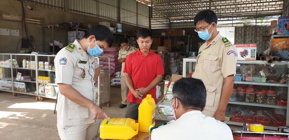 លោក កន កុម្ភៈ និងសហការី បានចុះអនុវត្តច្បាប់ស្តីពីការគ្រប់គ្រងថ្នាំកសិកម្ម និងជីកសិកម្ម នៅខេត្តកំពង់ស្ពឺ ។