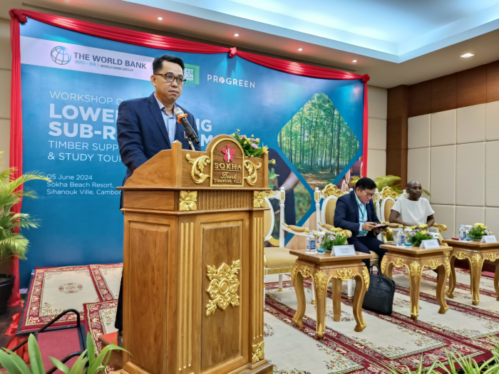 នៅព្រឹកថ្ងៃទី០៥ ខែមិថុនា ឆ្នាំ២០២៤ ឯកឧត្តមបណ្ឌិត កែវ អូម៉ាលីស្ស ប្រតិភូរាជរដ្ឋាភិបាលកម្ពុជាទទួលបន្ទុកជាប្រធានរដ្ឋបាលព្រៃឈើ បានអញ្ជើញជាអធិបតីក្នុងសិក្ខាសាលាផ្សព្វផ្សាយ និងទស្សនកិច្ចសិក្សាស្តីពីរបាយការណ៍ការលើកកម្ពស់ នៃការចូលរួមចំណែកផលិតផលឈើទៅក្នុងប្រទេសនៃអនុតំបន់ទន្លេមេគង្គ “Enhancing the Contribution of Wood Products to the Economies of the Lower Mekong Sub-Region” Report and Study Tour” ដែលប្រារព្ធធ្វើឡើងពីថ្ងៃទី០៥ ដល់ថ្ងៃទី០៨ ខែមិថុនា ឆ្នាំ២០២៤ នៅសណ្ឋាគារឆ្នេរសុខា ខេត្តព្រះសីហនុ ក្រោមការឧបត្ថម្ភដោយធនាគារពិភពលោក ដោយមានការអញ្ជើញចូលរួមមកពីរដ្ឋបាលព្រៃឈើ ក្រសួងរៀបចំដែនដី នគរូបនីយកម្ម និងសំណង់ ក្រសួងបរិស្ថាន ក្រុមហ៊ុនដាំឈើ ធនាគារពិភពលោក ប្រតិភូឡាវ និងវៀតណាម សរុបមានចំនួន ៣៣រូប។