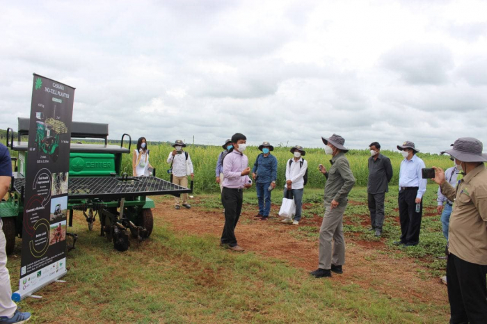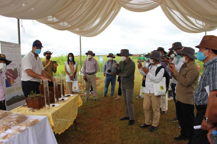 នៅថ្ងៃទី៨ និង៩ ខែកក្កដា ឆ្នាំ២០២១ លោកបណ្ឌិត សេង វ៉ាង ប្រធាននាយកដ្ឋានគ្រប់គ្រងធនធានដីកសិកម្ម បានដឹកនាំក្រុមការងារនាយកដ្ឋានគ្រប់គ្រងធនធានដីកសិកម្ម និងក្រុមការងារនៃមជ្ឈមណ្ឌលសេវាកម្មកសិកម្មអភិរក្ស (CASC) ដើម្បីទទួលកម្មវិធី ១). ដំណើរទស្សនកិច្ចទីវាលនិងកិច្ចប្រជុំប្រចាំឆ្នាំរបស់គណៈកម្មការតម្រង់ទិសសម្ព័ន្ធកសិកម្មអភិរក្សនិងប្រពលវប្បកម្មនិរន្តរភាពកម្ពុជា (CASIC) ក្រោមអធិបតីភាពឯកឧត្តម ឱម គឹមសៀរ រដ្ឋលេខាធិការនៃក្រសួងកសិកម្ម រុក្ខាប្រមាញ់ និងនេសាទ និងជាប្រធានគណៈកម្មការតម្រង់ទិសរបស់CASIC និង២). ដំណើរទស្សនកិច្ចទីវាលរបស់ក្រុមការងារនៃកម្មវិធីការគ្រប់គ្រងធនធានទឹកនិងវិវឌ្ឍនាការកសិអេកូឡូស៊ីនៅកម្ពុជាជំហាន១ សមាសភាគទី៤ (WAT4CAM TA-AGRI)ដឹកនាំដោយលោក Ruud Corsel ប្រធានក្រុមការងារTA-AGRI។ គោលបំណងនៃទស្សនកិច្ចទីវាលគឺដើម្បីស្វែងយល់ពីវឌ្ឍនភាពនៃការងារពិសោធន៍ស្រាវជ្រាវកសិកម្មអភិរក្សដីនៅក្នុងស្ថានីយពិសោធន៍កសិកម្មអភិរក្សបុសខ្នុរក្នុងស្រុកចម្ការលើ ខេត្តកំពង់ចាម។