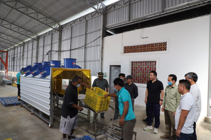 ឯកឧត្តមប្រតិភូ និងសហការី បានអញ្ជើញមកពិនិត្យសកម្មភាពសាងសង់រោងចក្រប្រព្រឹត្តិកម្មសម្លាប់សមាសភាពចង្រៃ ដោយប្រើចំហាយទឹកក្តៅ (Vapor Heat Treatment - VHT) របស់ក្រុមហ៊ុន សាង ដា ជាន ហួយ អ៊ិនធើណេសិនណល អេហ្គ្រីខលឈ័រ ប្រដាក់ អេន ឡូជីស្ទីក ឯ.ក ដែលមានទីតាំងនៅស្រុកកំពង់សិលា ខេត្តព្រះសីហនុ។