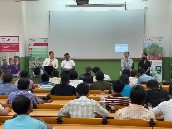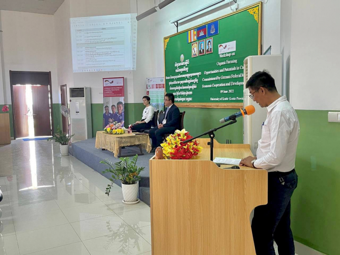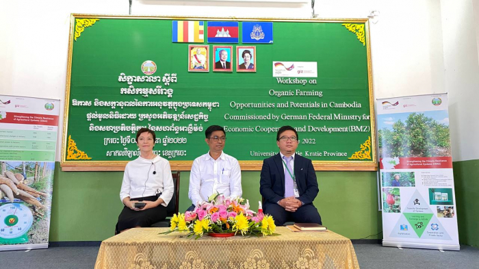 កាលពីថ្ងៃទី០៩ ខែមិថុនា ឆ្នាំ២០២២ នាយកដ្ឋានការពារដំណាំ អនាម័យ និងភូតគាមអនាម័យ ដោយមានកិច្ចសហប្រតិបត្តិការរវាងអគ្គនាយកដ្ឋានកសិកម្ម និងអង្គការ GIZ ក្នុងការអនុវត្តគម្រោងការពង្រឹងប្រព័ន្ធកសិកម្មបន្សាំអាកាសធាតុ (CRAS) នៅក្នុងប្រទេសកម្ពុជា និងវៀតណាម បានរៀបចំសិក្ខាសាលាស្តីពី “កសិកម្មសរីរាង្គ៖ ឱកាស និងសក្តានុពលនៃការអនុវត្តនៅក្នុងប្រទេសកម្ពុជា” នៅសាកលវិទ្យាល័យក្រចេះ ខេត្តក្រចេះ ក្រោមអធិបតីភាព លោក អ៊ុច សុធី អនុប្រធាននាយកដ្ឋានការពារដំណាំ អនាម័យ និងភូតគាមអនាម័យ លោកស្រីបណ្ឌិត Astrid Faust ប្រធានគម្រោង CRAS និងលោក គី វិសាល សាកលវិទ្យាធិការរងនៃសាកលវិទ្យាល័យក្រចេះ។ សិក្ខាសាលានេះមានការអញ្ជើញចូលរួមពីតំណាងនៃនាយកដ្ឋានការពារដំណាំ អនាម័យ និងភូតគាមអនាម័យ តំណាងនៃនាយកដ្ឋានសាកវប្បកម្ម និងដំណាំរួមផ្សំ តំណាងមន្ទីរកសិកម្ម រុក្ខាប្រមាញ់ និងនេសាទខេត្តក្រចេះ ខេត្តត្បូងឃ្មុំ ខេត្តមណ្ឌលគីរី ខេត្តស្ទឹងត្រែង និងខេត្តរតនគីរី តំណាងដៃគូរអភិវឌ្ឍន៍ ក្រុមអ្នកផលិត-កសិកម្ម សហគមន៍កសិកម្ម អ្នកផ្គត់ផ្គង់សម្ភារៈកសិកម្ម និងសាស្ត្រាចារ្យ-និស្សិតនៃសាកលវិទ្យាល័យក្រចេះ សរុបប្រមាណ ៦០រូប។ សិក្ខាសាលានេះមានគោលបំណងផ្តល់នូវបច្ចេកទេស បង្ហាញពីឱកាសនិងសក្តានុពលកសិកម្មសរីរាង្គនៃព្រះរាជាណាចក្រកម្ពុជាដល់ភាគីពាក់ព័ន្ធក្នុងវិស័យកសិកម្ម។