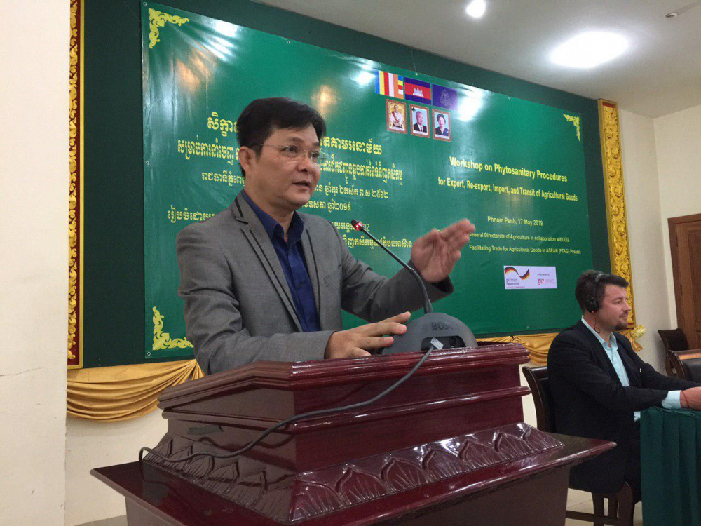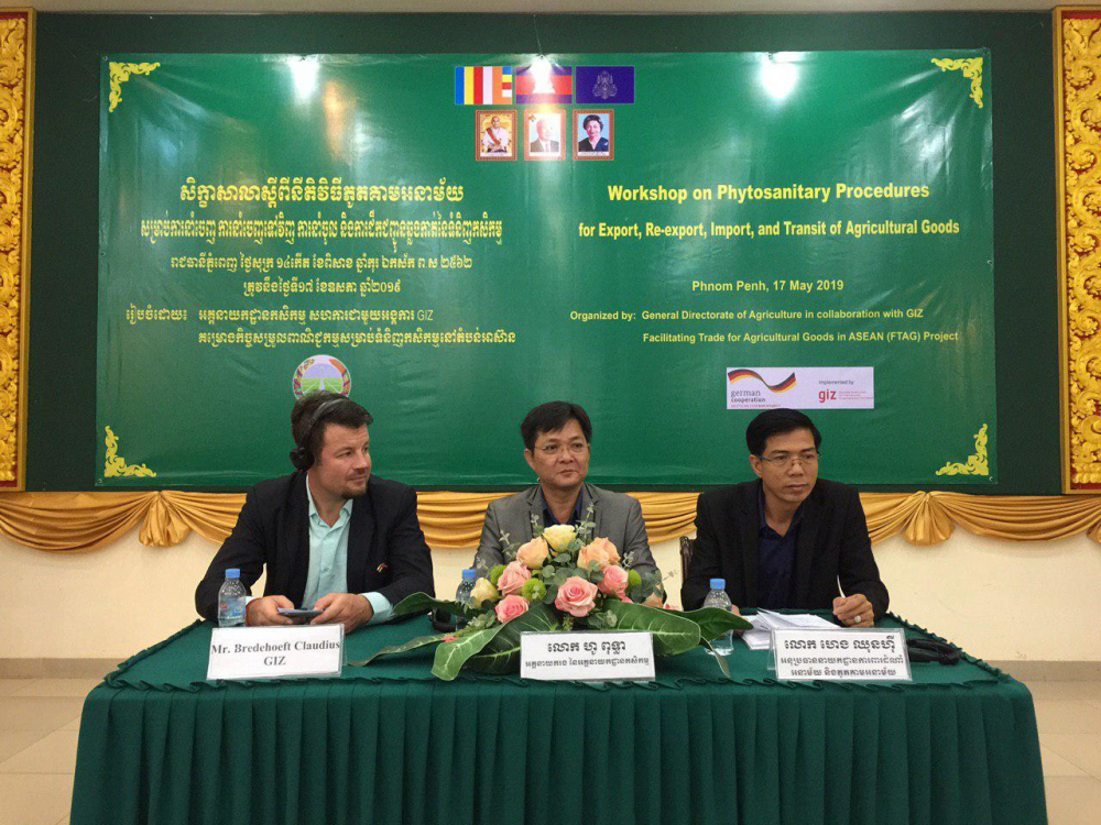 រយៈគម្រោងកិច្ចសហប្រតិបត្តិការក្នុងតំបន់ស្ដីពី កិច្ចសម្រួលពាណិជ្ជកម្មសម្រាប់ទំនិញកសិកម្មនៅតំបន់អាស៊ាន នាយកដ្ឋានការពារដំណាំ អនាម័យ និងភូតគាមអនាម័យ នៃអគ្គនាយកដ្ឋានកសិកម្ម បានរៀបចំសិក្ខាសាលាស្ដីពីនីតិវិធីភូតគាមអនាម័យសម្រាប់ការនាំចេញ ការនាំចេញទៅវិញ ការនាំចូល និងការដឹកជញ្ជូនឆ្លងកាត់នៃទំនិញកសិកម្ម ក្រោមអធិបតីភាពរបស់លោក ហូ ពុទ្ធា អគ្គនាយករង នៃអគ្គនាយកដ្ឋានកសិកម្ម និងមានការអញ្ជើញចូលរួមពី Mr. Bredehoeft Claudius, Cluster Coordinator Agriculture & Climate Change, GIZ តំណាងអគ្គនាយកដ្ឋានគយ និងរដ្ឋាករកម្ពុជា តំណាងក្រសួងពាណិជ្ជកម្ម តំណាងអង្គការGIZ មន្រ្តីជំនាញនៃនាយកដ្ឋានការពារដំណាំ