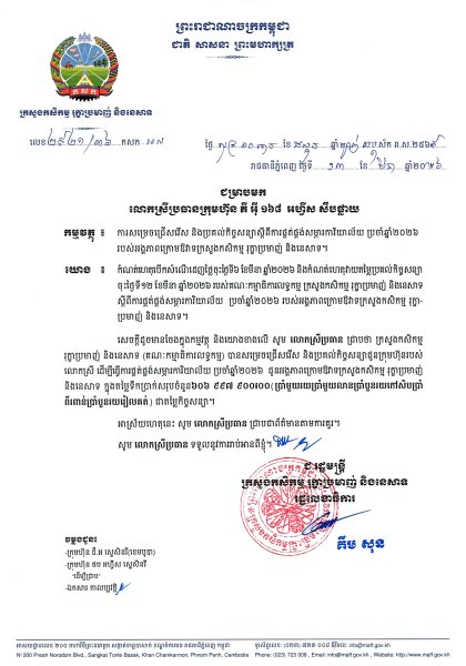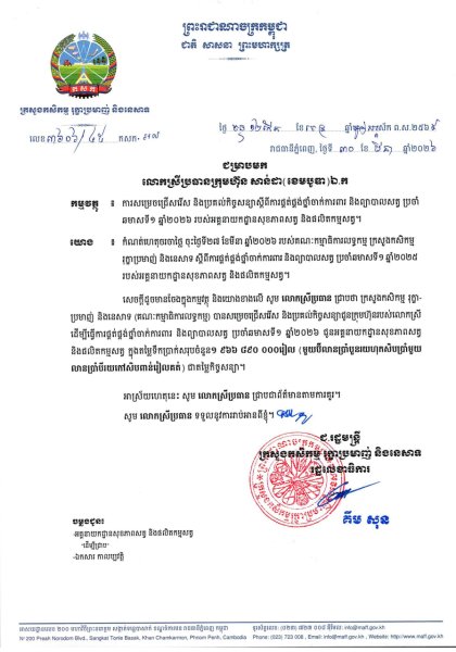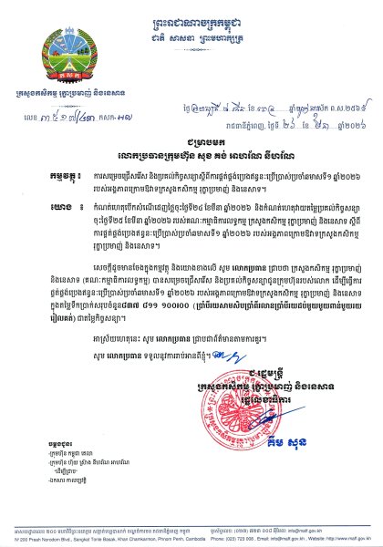 ស្តីពីការផ្គត់ផ្គង់ប្រេងឥន្ទនៈប្រើប្រាស់ប្រចាំឆមាសទី១ ឆ្នាំ២០២៦ របស់អគ្គភាពក្រោមឪវាទក្រសួងកសិកម្ម រុក្ខាប្រមាញ់ និងនេសាទ