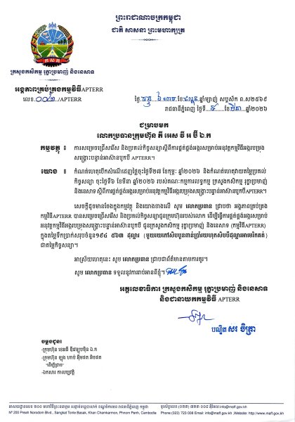 ស្តីពីការផ្គត់ផ្គង់អង្ករសម្រាប់អនុវត្តកម្មវិធីបម្រុងសង្គ្រោះបន្ទាន់អាស៊ានបូកបី APTERR