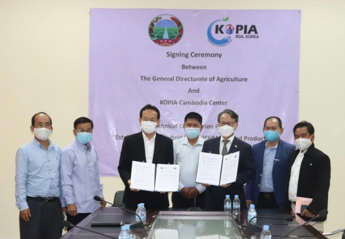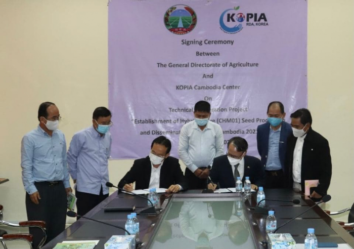 ពិធីចុះហត្ថលេខាលើអនុស្សារណៈនៃការយោគយល់រវាងអគ្គនាយកដ្ឋានកសិកម្ម និងមជ្ឈមណ្ឌល KOPIA ប្រចាំកម្ពុជា លើគម្រោងកិច្ចសហការបច្ចេកទេសស្ដីពី ផលិតកម្ម និងការផ្សព្វផ្សាយគ្រាប់ពូជពោតអ៊ីប្រ៊ីត (CHM01) នៅប្រទេសកម្ពុជា