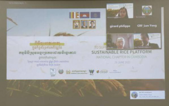 នាព្រឹកថ្ងៃទី២៥ ខែមិថុនា ឆ្នាំ២០២១ ឯកឧត្តមបណ្ឌិត ងិន ឆាយ ប្រតិភូរាជរដ្ឋាភិបាលកម្ពុជាទទួលបន្ទុកជាអគ្គនាយកនៃអគ្គនាយកដ្ឋានកសិកម្ម បានអញ្ជើញជាគណៈអធិបតីក្នុងពិធីចុះហត្ថលេខាលើកិច្ចព្រមព្រៀងដើម្បីគាំទ្រលើការបង្កើតលេខាធិការដ្ឋានថ្នាក់ជាតិនៅកម្ពុជាស្តីពី ទម្រង់ផលិតកម្មស្រូវប្រកបដោយនិរន្តរភាព (Cambodia National Sustainable Rice Platform (SRP) Chapter)។ អញ្ជើញចូលរួមក្នុងពិធីនេះដែររួមមាន លោក និងលោកស្រីជាថ្នាក់ដឹកនាំនៃអគ្គនាយកដ្ឋានកសិកម្ម តំណាងវិស័យឯកជន អង្គការមិនមែនរដ្ឋាភិបាល និងលេខាធិការដ្ឋាន SRP សរុបចំនួនប្រមាណ ២៥រូប។ ភាគីហត្ថលេខីនៃកិច្ចព្រមព្រៀងនេះ រួមមាន អគ្គនាយកដ្ឋានកសិកម្ម សហព័ន្ធស្រូវអង្ករកម្ពុជា (Cambodia Rice Federation, CRF) អង្គការ CIRAD, WCS និង Swisscontact។