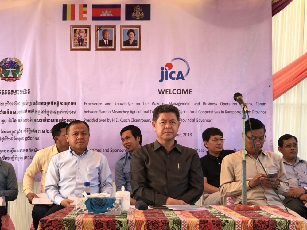 សហការណ៍ជាមួយអង្គការ JICA និងមន្ទីរកសិកម្ម រុក្ខាប្រមាញ់ និងនេសាទខេត្តកំពង់ចាម រៀបចំវេទិកាផ្លាស់ប្តូរបទពិសោធន៍ និងចំណេះដឹងលើការគ្រប់គ្រងនិងការប្រកបមុខរបរអាជីវកម្មរវាងសហគមន៍កសិកម្មសំបូរមានជ័យ និងសហគមន៍កសិកម្មនៅខេត្តកំពង់ចាម ក្រោមអធិបតីភាពឯកឧត្តម គួច ចំរើន អភិបាលនៃគណអភិបាលខេត្តកំពង់ចាម លោក ស្រ៊ុន សុខុម អគ្គនាយករងនៃអគ្គនាយកដ្ឋានកសិកម្មតំណាងឯកឧត្តមប្រតិភូរាជរដ្ឋាភិបាលកម្ពុជាទទួលបន្ទុកជាអគ្គនាយកនៃអគ្គនាយកដ្ឋានកសិកម្ម តំណាងអង្គការJICA លោក ជា សាំងដូណា ប្រធាននាយកដ្ឋានអភិវឌ្ឍន៍សហគមន៍កសិកម្ម និងលោកប្រធានមន្ទីរកសិកម្ម រុក្ខាប្រមាញ់ និងនេសាទខេត្តកំពង់ចាម និងមានកសិករភ្ញៀវចូលរួមក្នុងវេទិការនេះសរុបមានចំនួនប្រមាណ៣០០នាក់។ វេទិកានេះធ្វើឡើងក្នុងគោលបំណងគឺដើម្បីឱ្យសហគមន៍កសិកម្មសំបូរមានជ័យចែករំលែកបទពិសោធន៍ និងចំណេះដឹងរបស់ខ្លួនលើការងារដឹកនាំគ្រប់គ្រងសហគមន៍ ការប្រកបមុខរបរទីផ្សារកសិផលទទួលបានជោគជ័យទៅដល់សហគមន៍កសិកម្មផ្សេងៗទៀត។