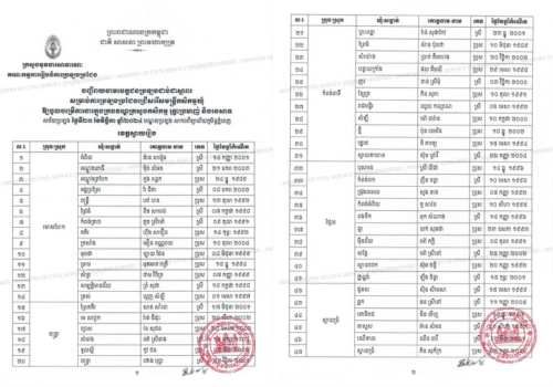 បញ្ជីរាយនាម បេក្ខជនប្រឡងជាប់ជាស្ថាពរនៃការប្រឡងប្រជែងជ្រើសរើសមន្ត្រីកសិកម្មឃុំ ឱ្យចូលបម្រើការងារក្នុងក្របខណ្ឌក្រសួងកសិកម្ម រុក្ខាប្រមាញ់ និងនេសាទ ខេត្តប៉ៃ...