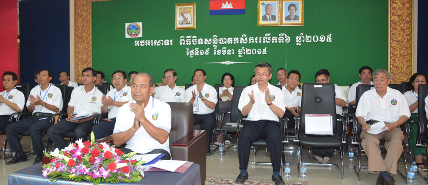 នៅទីស្តីការក្រសួងកសិកម្មកាលពីថ្ងៃទី១៩ ខែមីនា ឆ្នាំ២០១៥ នេះឯកឧត្តមបណ្ឌិត អ៊ុក រ៉ាប៊ុនរដ្ឋមន្ត្រីក្រសួងកសិកម្ម រុក្ខាប្រមាញ់ និងនេសាទបានអញ្ចើញជាអធិបតីនៅក្នុងពិធីបិទសន្និបាតកសិករលើកទី៦។...