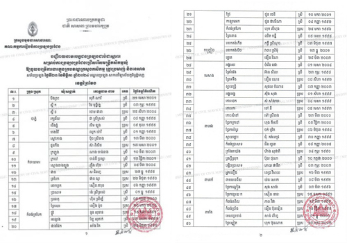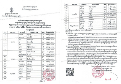 បញ្ជីរាយនាម បេក្ខជនប្រឡងជាប់ជាស្ថាពរនៃការប្រឡងប្រជែងជ្រើសរើសមន្ត្រីកសិកម្មឃុំ ឱ្យចូលបម្រើការងារក្នុងក្របខណ្ឌក្រសួងកសិកម្ម រុក្ខាប្រមាញ់ និងនេសាទ ខេត្តព្រ...