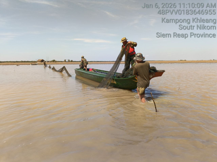 នៅថ្ងៃទី៦ ខែមករា ឆ្នាំ២០២៦ ឯកឧត្តម ប៉ែន ផល្លីកា អនុរដ្ឋលេខាធិការ ក្រសួងកសិកម្ម រុក្ខាប្រមាញ់ និងនេសាទ តំណាងដ៏ខ្ពង់ខ្ពស់ឯកឧត្តមរដ្ឋមន្ត្រី ឌិត ទីណា បានអញ្ជើញដឹកនាំក្រុមការងារជំនាញ ចុះប្រតិបត្តិការទប់ស្កាត់ និងបង្ក្រាបបទល្មើសជលផល នៅក្នុងតំបន់គ្រប់គ្រងជលផល ឃុំកំពង់ភ្លុក ស្រុកប្រាសាទបាគង ដល់ឃុំកំពង់ឃ្លាំង ស្រុកសូទ្រនិគម ខេត្តសៀមរាប។