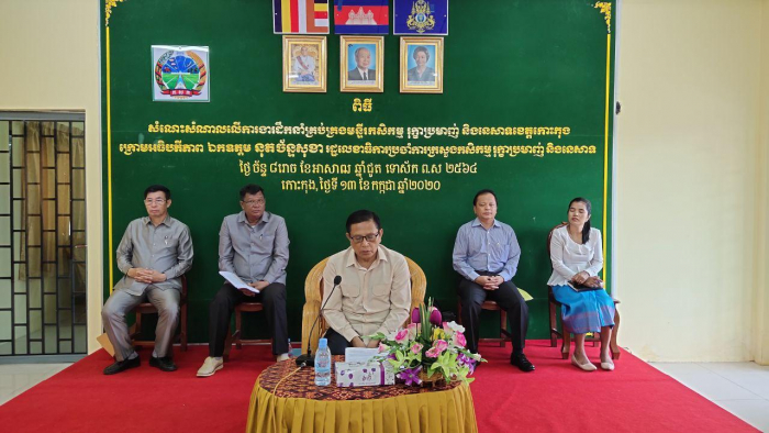 សកម្មភាពចូលរួមជួបពិភាក្សាការងារជាមួយលោកជំទាវអភិបាល នៃគណៈអភិបាលខេត្តកោះកុង និងចុះត្រួតពិនិត្យលើការងារដឹកនាំ និងគ្រប់គ្រងរបស់មន្ទីរកសិកម្ម រុក្ខាប្រមាញ់ និងនេសាទខេត្តកោះកុង និងជំរុញការកែលម្អចំណុចខ្វះខាតដែលក្រសួងបានណែនាំឱ្យកែលម្អកន្លងមក ក្រោមអធិបតីភាព ឯកឧត្តម នុត ច័ន្ទសុខា រដ្ឋលេខាធិការប្រចាំការ អមដំណើរដោយឯកឧត្តម គង់ វ៉ាញ អគ្គាធិការ នៃអគ្គាធិការដ្ឋាន និងលោក ទី ចាន់ណាប្រធាននាយកដ្ឋានបុគ្គលិក និងអភិវឌ្ឍន៍ធនធានមនុស្ស និងលោកប្រធានការិយាល័យទទួលពាក្យបណ្តឹង នៃអគ្គាធិការដ្ឋានក្រសួងកសិកម្ម រុក្ខាប្រមាញ់ និងនេសាទ នៅថ្ងៃចន្ទ ៨រោច ខែអាសាឍ ឆ្នាំជូត ទោស័ក ព.ស.២៥៦៤ ត្រូវនឹងថ្ងៃទី១៣ ខែកក្កដា ឆ្នាំ២០២០។