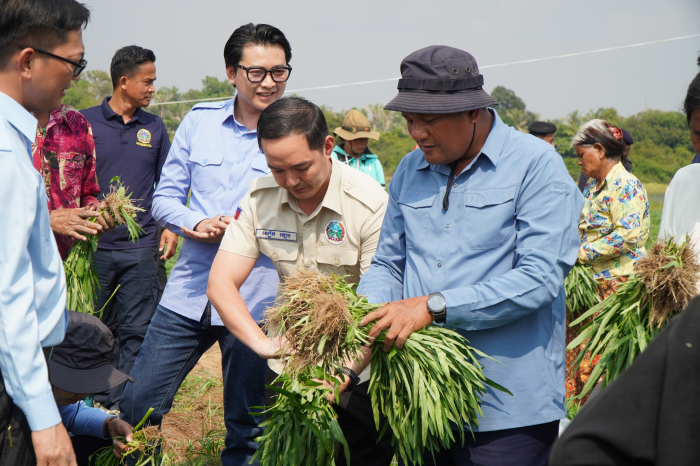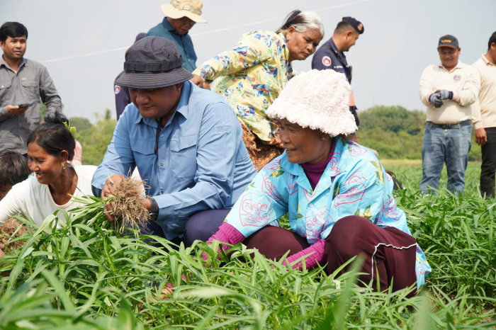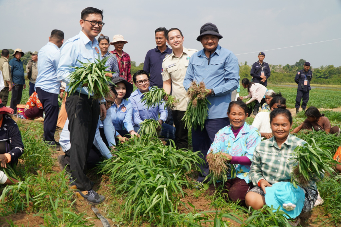 នាថ្ងៃទី១៧ ខែមករា ឆ្នាំ២០២៦ ឯកឧត្តម សៀក ឡេង អនុរដ្ឋលេខាធិការក្រសួងកសិកម្ម រុក្ខាប្រមាញ់ និងនេសាទ និងជាក្រុមការងាររាជរដ្ឋាភិបាលចុះមូលដ្ឋានខេត្តឧត្តរមានជ័យ ឯកឧត្តមអនុរដ្ឋលេខាធិការ ហៃ រស្មី ឯកឧត្តម មាន ចាន់យ៉ាដា អភិបាលនៃគណៈអភិបាលខេត្តឧត្តរមានជ័យ ឯកឧត្តម ឃុត ចាន់ដារ៉ា អ្នកតំណាងរាស្ត្រមណ្ឌលរាជធានីភ្នំពេញ និងសហការី ព្រមទាំងប្រជាស្ម័គ្រចិត្តក្នុងមណ្ឌលសុវត្ថិភាព បានអញ្ជើញចូលរួមចុះប្រមូលផលបន្លែ មានត្រកួនចំនួន ១ ០០០គីឡូក្រាម និងស្ពៃចង្កឹះចំនួន ១ ០០០គីឡូក្រាម ដែលដាំដុះនៅកសិដ្ឋានកសិកម្មជនភៀសសឹកមណ្ឌលសុវត្ថិភាពបាត់ថ្កាវ ព្រមទាំងស៊ុតទាចំនួន ១ ៥០០គ្រាប់ សម្រាប់ផ្គត់ផ្គង់ជូនដល់ប្រជាពលរដ្ឋដែលបានភៀសសឹកនៅភូមិសាស្ត្រខេត្តឧត្តរមានជ័យ។