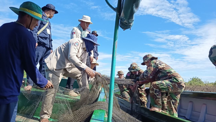 នៅថ្ងៃទី៥ ខែធ្នូ ឆ្នាំ២០២៥ ឯកឧត្តម ប៉ែន ផល្លីកា អនុរដ្ឋលេខាធិការ ក្រសួងកសិកម្ម រុក្ខាប្រមាញ់ និងនេសាទ តំណាងដ៏ខ្ពង់ខ្ពស់ឯកឧត្តមរដ្ឋមន្ត្រី ឌិត ទីណា បានអញ្ជើញដឹកនាំក្រុមការងារជំនាញ រួមមានលោក សោម សុវណ្ណ នាយរងអធិការដ្ឋានរដ្ឋបាលជលផលខាងជើងបឹងទន្លេសាប លោក ជុំ ចាន់ថេង អភិបាលរងស្រុកសូទ្រនិគម លោក ធិននី សុទ្ធី នាយខណ្ឌរដ្ឋបាលជលផលសៀមរាប រដ្ឋបាលជលផលចុងឃ្នៀស សង្កាត់រដ្ឋបាលជលផលប្រាសាទបាគង និងមន្ត្រីខណ្ឌ ការិយាល័យវិវាទកម្មនៃរដ្ឋបាលជលផល កងកម្លាំងរាជអាវុធហត្ថខេត្តសៀមរាប កងកម្លាំងបញ្ជារការដ្ឋានសឹករងខេត្តសៀមរាប ដឹកនាំដោយលោក វរសេនីយ៍ត្រី ពុំ ពឿយ បានចុះត្រួតពិនិត្យ ទប់ស្កាត់ និងបង្រ្កាបបទល្មើសនេសាទខុសច្បាប់ ក្នុងតំបន់គ្រប់គ្រងជលផល ចាប់ពីចំណុច ឃុំកំពង់ភ្លុក ស្រុកប្រាសាទបាគង រហូតដល់ចំណុចកន្ទូ ឃុំដានរុន ស្រុកសូទ្រនិគម។