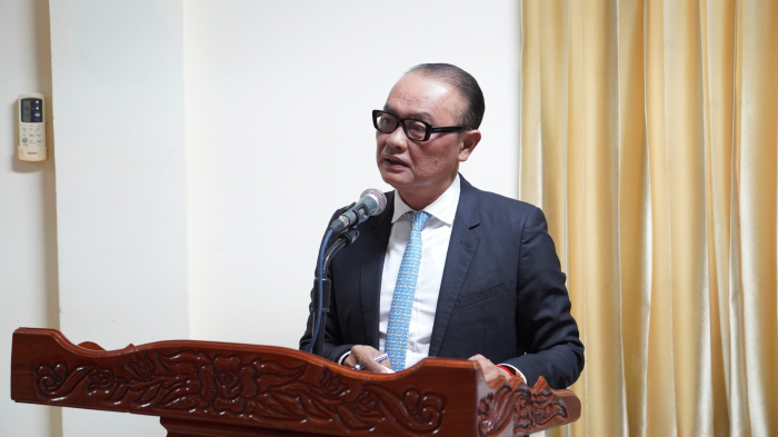ជាកិច្ចចាប់ផ្តើម ឯកឧត្តមរដ្ឋលេខាធិការ បានសម្តែងនូវការស្វាគមន៍យ៉ាងកក់ក្តៅ និងមានក្ដីសោមនស្សរីករាយជាអនេកដែលបានចូលរួមពិធីនាថ្ងៃនេះ។ លើសពីនេះ ឯកឧត្តមរដ្ឋលេខាធិការ បានកោតសរសើរ និងវាយតម្លៃខ្ពស់ដល់ថ្នាក់ដឹកនាំ និងមន្រ្តីរាជការគ្រប់លំដាប់ថ្នាក់នៃអគ្គនាយកដ្ឋានសុខភាពសត្វ និងផលិតកម្មសត្វ ដែលបានខិតខំបំពេញតួនាទីភារកិច្ចរបស់ខ្លួនប្រកបដោយស្មារតីទទួលខុសត្រូវខ្ពស់ និងសម្រេចបានលទ្ធផលការងារជាច្រើនគួរជាទីមោទនៈក្នុងឆ្នាំ២០២៤នេះ។