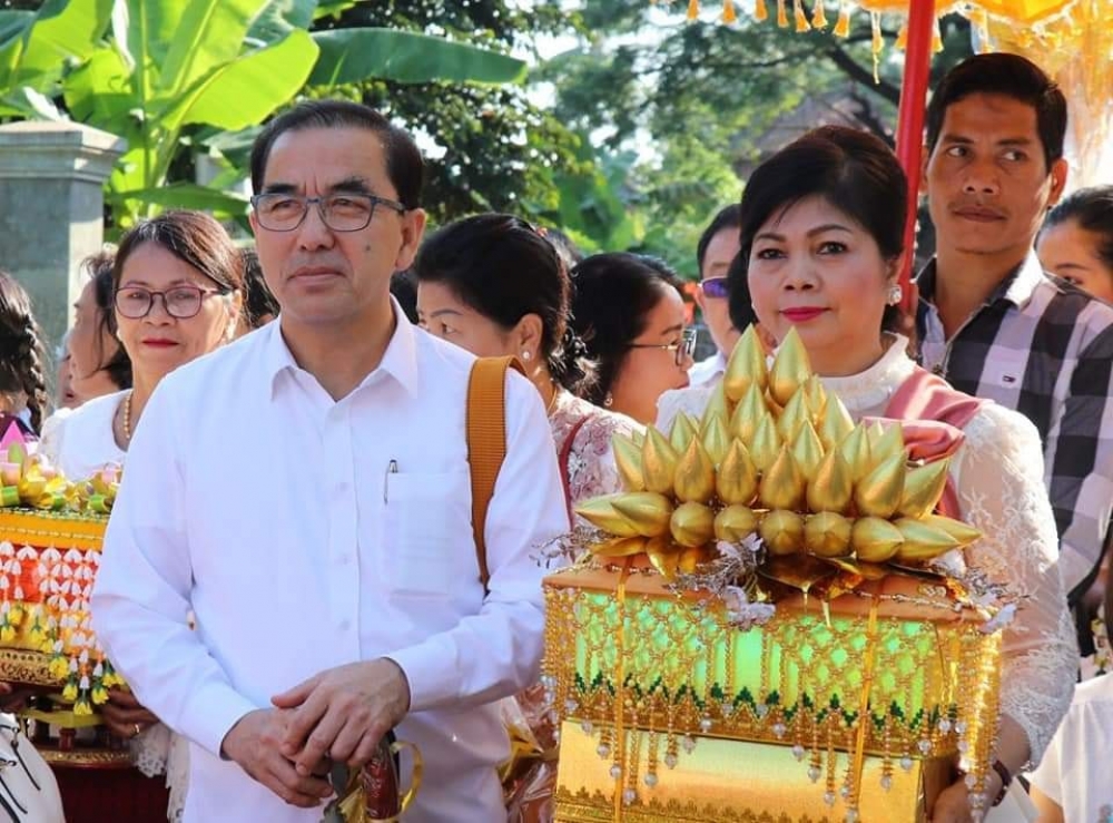 ឯកឧត្តមរដ្ឋមន្ត្រី វេង សាខុន និងលោកជំទាវ ព្រមទាំងថ្នាក់ដឹកនាំ សមាជិក សមាជិកា មន្ត្រីរាជការនៃក្រសួងកសិកម្ម រុក្ខាប្រមាញ់ និងនេសាទ និងពុទ្ធបរិស័ទបានដង្ហែអង្គកឋិនទានសាមគ្គី