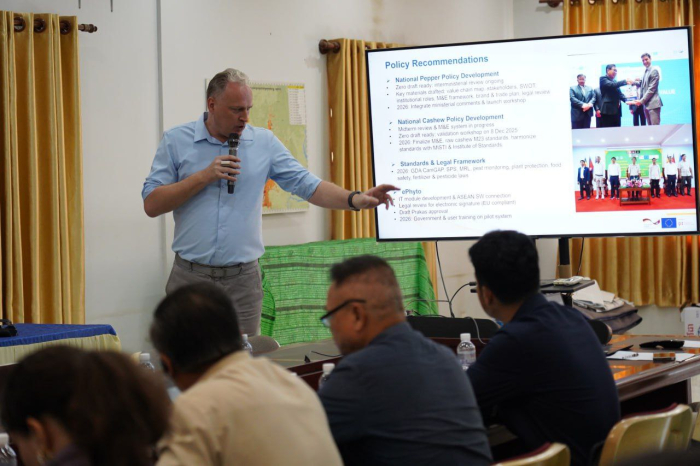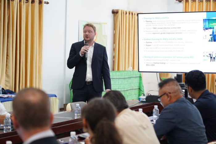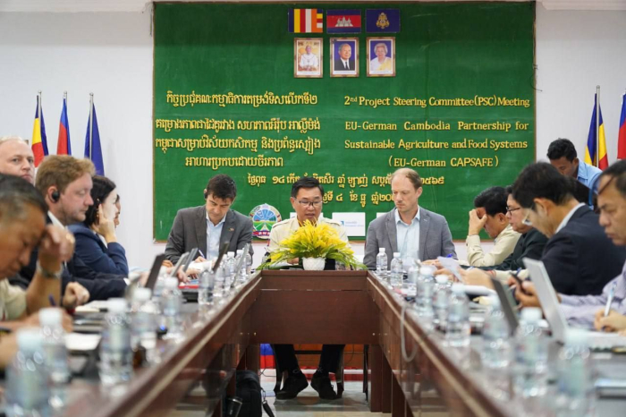 នាព្រឹកថ្ងៃទី៤ ខែធ្នូ ឆ្នាំ ២០២៥ ឯកឧត្ដម តូច ប៊ុនហួរ រដ្ឋលេខាធិការក្រសួងកសិកម្ម រុក្ខាប្រមាញ់ និងនេសាទ និងឯកឧត្តម មាស ពិសិដ្ឋ រដ្ឋលេខាធិការក្រសួងកសិកម្ម រុក្ខាប្រមាញ់ និងនេសាទ អមដំណើរដោយ ឯកឧត្តមអនុរដ្ឋលេខាធិការ ចាន់ សុវត្ថិភាព និង ឯកឧត្តមអនុរដ្ឋលេខាធិការ សាយ សុភភោគា បានសហការជាមួយមន្ត្រីសហភាពអឺរ៉ុប និងមន្ត្រីនៃស្ថានទូតអាល្លឺម៉ង់ប្រចាំនៅកម្ពុជា ដើម្បីដឹកនាំកិច្ចប្រជុំលើកទី ២ របស់គណៈកម្មាធិការតម្រង់ទិសនៃគម្រោង EU-German CAPSAFE នៅខេត្តកំពង់ធំ។