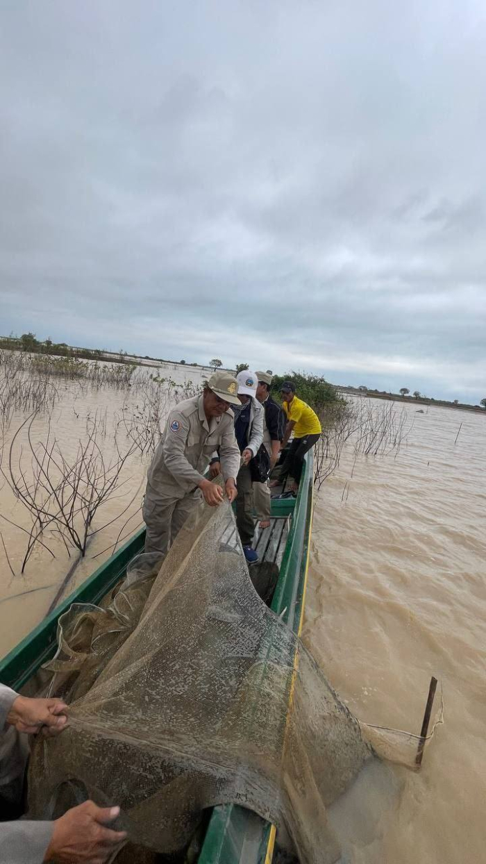 នៅថ្ងៃទី៤ ខែធ្នូ ឆ្នាំ២០២៥ ឯកឧត្ដម ទឹម បូរក្ស អនុរដ្ឋលេខាធិការក្រសួងកសិកម្ម រុក្ខាប្រមាញ់ និងនេសាទ តាមការណែនាំពី ឯកឧត្តមរដ្ឋលេខាធិការ ហាស់ សារ៉េត ដោយមានការចូលរួមពី លោក ងិន សុខ នាយខណ្ឌរដ្ឋបាលជលផល នៃខណ្ឌរដ្ឋបាលជលផលព្រៃវែង ដោយបានប្រើកម្លាំងសរុប ១៥នាក់ ប្រើប្រាស់កាណូតចំនួន២គ្រឿង ដើម្បីចុះស្រាវជ្រាវ ត្រួតពិនិត្យ ទប់ស្កាត់និងបង្ក្រាបបទល្មើសជលផល នៅចំណុចព្រែកផ្លូវក្របី ភូមិព្រៃកន្លោង ឃុំព្រៃកន្លោង ស្រុកពោធិ៍រៀង ខេត្តព្រៃវែង។