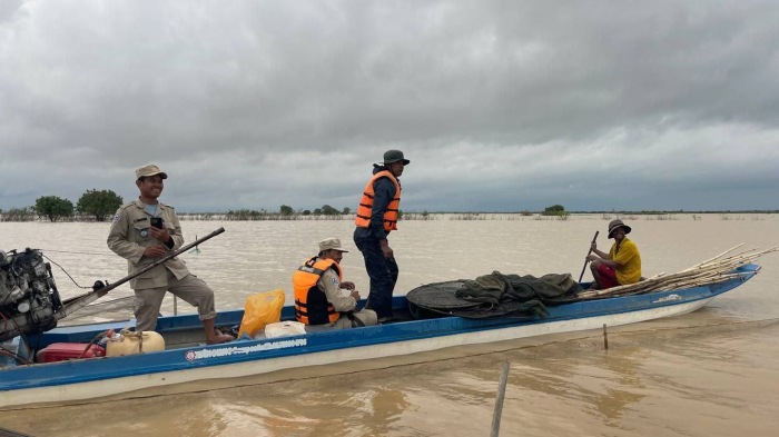 ឯកឧត្ដមអនុរដ្ឋលេខាធិការ ទឹម បូរក្ស ដឹកនាំក្រុមការងារចុះស្រាវជ្រាវ ត្រួតពិនិត្យ ទប់ស្កាត់និងបង្ក្រាបបទល្មើសជលផល នៅចំណុចព្រែកផ្លូវក្របី ភូមិព្រៃកន្លោង ខេត្តព្រៃវែង