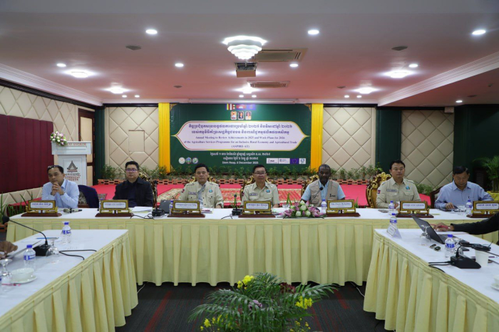 ពីថ្ងៃទី៤ ដល់ទី៦ ខែធ្នូ ឆ្នាំ ២០២៥ ឯកឧត្តម តូច ប៊ុនហួរ និង ឯកឧត្តម មាស ពិសិដ្ឋ រដ្ឋលេខាធិការក្រសួងកសិកម្ម រុក្ខាប្រមាញ់ និងនេសាទ ក្នុងឋានៈជាសហប្រធានគណៈកម្មាធិការតម្រង់ទិស និងជានាយក “ កម្មវិធីគាំទ្រសេដ្ឋកិច្ចជនបទ និងពាណិជ្ជកម្មផលិតផលកសិកម្ម (Agriculture Services Programme for an Inclusive Rural Economy and Agricultural Trade, ASPIRE-AT) ” និង “ គម្រោងបង្កើនភាពធន់នឹងអាកាសធាតុ ក្នុងខ្សែច្រវាក់តម្លៃកសិកម្មនៅកម្ពុជា (CREA Project) ” អមដំណើរដោយ ឯកឧត្តមអនុរដ្ឋលេខាធិការ ចាន់ សុវត្ថិភាព និង ឯកឧត្តមអនុរដ្ឋលេខាធិការ សាយ សុភភោគា បានដឹកនាំធ្វើទស្សនកិច្ចក្រុមហ៊ុនកសិកម្ម និងសហគមន៍កសិកម្ម នៅខេត្តកំពង់ធំ ព្រះវិហារ និងខេត្តសៀមរាប ព្រមទាំងដឹកនាំកិច្ចប្រជុំប្រចាំឆ្នាំ នៅខេត្តសៀមរាប ដើម្បីពិនិត្យ បូកសរុប និងវាយតម្លៃលទ្ធផល ដែលកម្មវិធី ASPIRE-AT សម្រេចបាន នៅក្នុងឆ្នាំ ២០២៥ ហើយកំណត់បញ្ហាប្រឈម ទិសដៅ និងសកម្មភាពនានា ដែលគួរត្រូវបានដោះស្រាយ និងអនុវត្ត នៅក្នុងឆ្នាំ ២០២៦ ។
