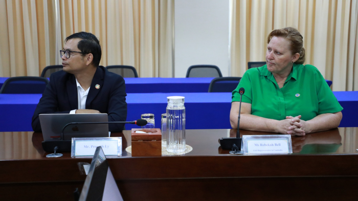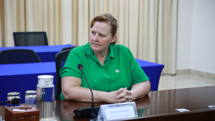 នាព្រឹកថ្ងៃទី០៨ ខែសីហា ឆ្នាំ២០២៤ ឯកឧត្តម ឌិត ទីណា រដ្ឋមន្ត្រីក្រសួងកសិកម្ម រុក្ខាប្រមាញ់ និងនេសាទ និងថ្នាក់ដឹកនាំ បានទទួលជួបពិភាក្សាការងារអំពីជីវម៉ាស (Biomass) ជាមួយលោកស្រី Rebekah Bell នាយកអង្គការស្បៀង និងកសិកម្មនៃសហប្រជាជាតិប្រចាំប្រទេសកម្ពុជា នៅទីស្តីការក្រសួងកសិកម្ម រុក្ខាប្រមាញ់ និងនេសាទ។