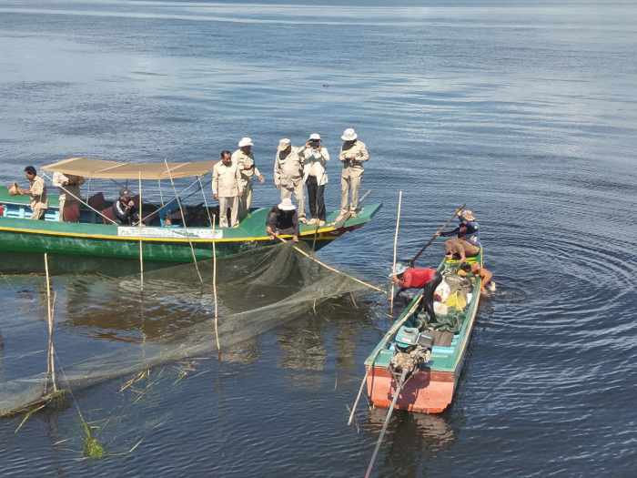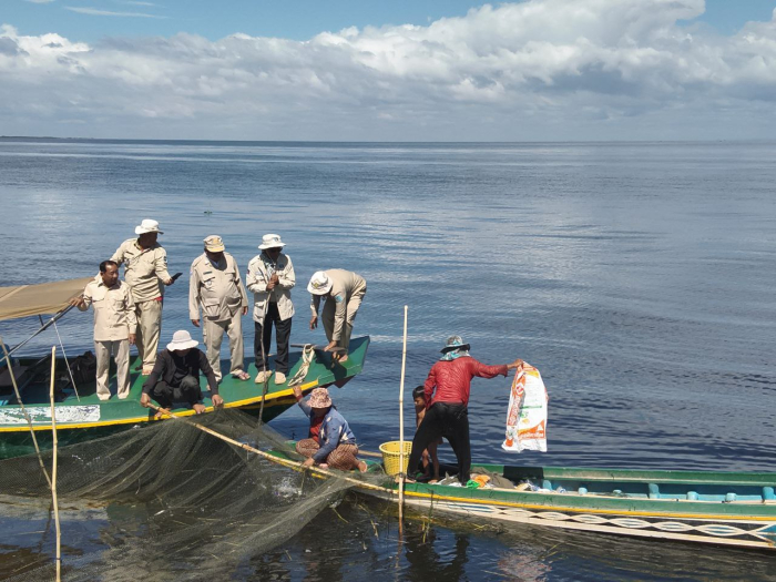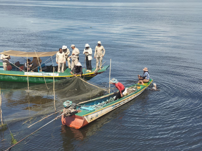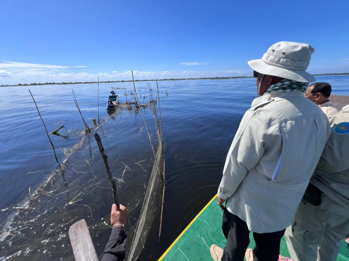 នៅថ្ងៃទី៦ ខែធ្នូ ឆ្នាំ២០២៥ ឯកឧត្តម ប៉ែន ផល្លីកា អនុរដ្ឋលេខាធិការ ក្រសួងកសិកម្ម រុក្ខាប្រមាញ់ និងនេសាទ តំណាងដ៏ខ្ពង់ខ្ពស់ ឯកឧត្តម ឌិត ទីណា រដ្ឋមន្ត្រីក្រសួងកសិកម្ម រុក្ខាប្រមាញ់ និងនេសាទ អមដំណើរដោយ លោក មិត្រ សុខសុភ័ក្រ្ត នាយអធិការដ្ឋានរដ្ឋបាលជលផលខាងត្បូងបឹងទន្លេសាប លោក សោម សុវណ្ណ នាយរងអធិការដ្ឋានរដ្ឋបាលជលផលខាងជើងបឹងទន្លេសាប លោក ស៊ាន សំអុល នាយរងផ្នែករដ្ឋបាលជលផលព្រែកទាល់ និងសហការី ដោយមានកម្លាំងសរុបចំនួន ១៣នាក់ និងប្រើមធ្យោបាយកាណូតចំនួន ៣គ្រឿង បានចេញប្រត្តិបត្តិការណ៍ត្រួតពិនិត្យ ទប់ស្កាត់ និងបង្រ្កាបបទល្មើសនៅចំណុចព្រែកទាល់ ពាក់កន្ទេល ព្រែកត្រសក់ ក្បាលតោល ស្ថិតក្នុងភូមិសាស្រ្តភូមិក្បាលតោល ឃុំកោះជីវាំង ស្រុកឯកភ្នំ ខេត្តបាត់ដំបង។