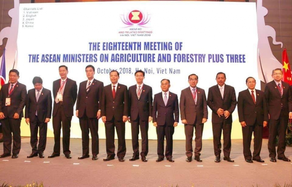 នៅព្រឹកថ្ងៃសុក្រ ០៣កើត ខែអស្សុជ ឆ្នាំច សំរឹទ្ធិស័ក ព.ស២៥៦២ ត្រូវនឹងថ្ងៃទី១២ ខែតុលា ឆ្នាំ២០១៨ ឯកឧត្តមរដ្ឋមន្រ្តី វេង សាខុន និងគណៈប្រតិភូបានចូលរួមកិច្ចប្រជុំលើកទី១៨ នៃរដ្ឋមន្រ្តីកសិកម្ម និងព្រៃឈើអាស៊ានបូកបី (AMAF Plus Three)។ រដ្ឋមន្រ្តីកសិកម្ម និងព្រៃឈើអាស៊ានបូកបីនៅតែមានការយកចិត្តទុកដាក់ទៅលើ សន្តិសុខស្បៀង ការអភិវឌ្ឍន៏ជនបទ ការបង្ការនិងទប់ស្កាត់ជំងឺរាតត្បាតនៃការធ្វើពាណិជ្ជកម្មផលិតផលកសិកម្មឆ្លងដែន និងការជំរុញភាពជាដៃគូរវាងវិស័យឯកជននិងរដ្ឋនៅក្នុងតំបន់ ដើម្បីពង្រីកពាណិជ្ជកម្មផលិតផលកសិកម្មរវាងប្រទេសអាស៊ានបូកបី។ ភាគីចិន ជប៉ុន និងកូរ៉េ បានបង្ហាញនូវជំហរក្នុងការពង្រឹងកិច្ចសហប្រតិបត្តិការជាមួយបណ្តាប្រទេសអាស៊ានជាពិសេសបន្តគាំទ្រក្នុងការអនុវត្តយន្តការ កិច្ចព្រមព្រៀងស្បៀងបម្រុងសង្រ្គោះបន្ទាន់អាស៊ានបូកបី (APTERR) និងយន្តការ ប្រព័ន្ធព័ត៌មានវិទ្យាសន្តិសុខស្បៀងអាស៊ានបូកបី (AFSIS)