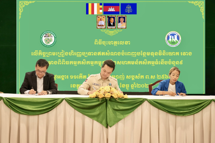 ដោយសារភាពស្រពេចស្រពិលនៃបញ្ហាសង្គ្រាមនៅតាមបណ្តាខេត្តជាប់ព្រំដែន កម្មវិធីចុះកិច្ចព្រមព្រៀងដ៏សំខាន់នេះត្រូវបានធ្វើឡើងរួមគ្នានៅខេត្តសៀមរាប នៅថ្ងៃទី៣០ ខែធ្នូ ឆ្នាំ២០២៥ ដែលជាការចុះកិច្ចព្រមព្រៀងក្នុងទំហំធំបំផុតមិនធ្លាប់មានពីមុនមក ដើម្បីជួយគាំទ្រដើមទុនដល់កសិករដាំដុះស្រូវចំនួនជាង១៥០០គ្រួសារ នៅលើផ្ទៃដីជាង១៥០០០ហិកតា និងការវិនិយោគលើហេដ្ឋារចនាសម្ព័ន្ធផលិតកម្មមួយចំនួនដូចជា ឃ្លាំង ម៉ាសុីនច្រូត ត្រាក់ទ័រ ម៉ាសុីនបូមទឹក និងម៉ាសុីនកិនស្រូវជាដើម។