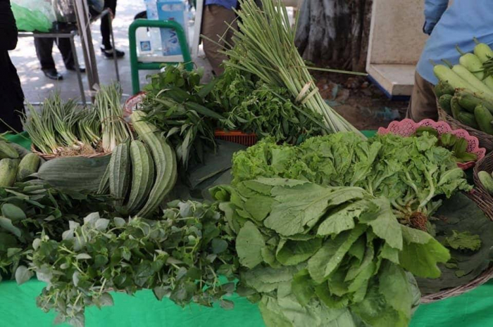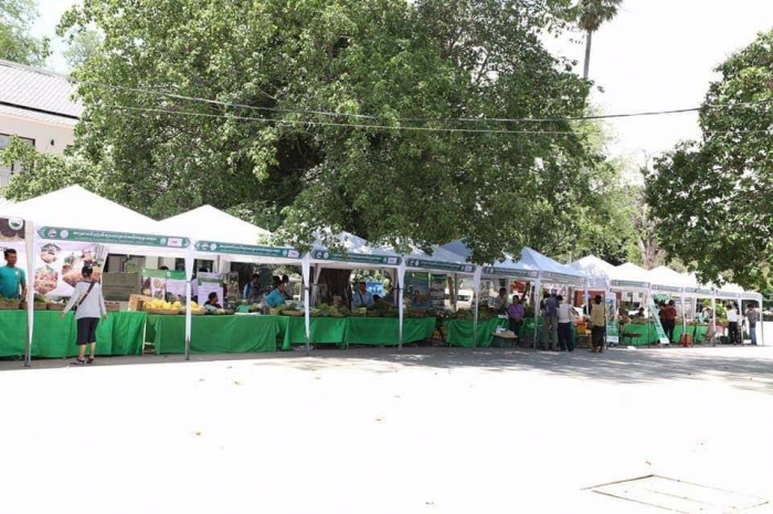 បន្ទាប់ពីបានចុះពិនិត្យកសិដ្ឋានចិញ្ចឹមកង្កែបនៅស្រុកប្រាសាទបាគងរួចមក ឯកឧត្តមរដ្ឋមន្រ្តី វេង សាខុន និងលោកជំទាវ ព្រមទាំងសហការី បានឆ្លៀតឱកាសអញ្ជើញចូលទស្សនាការតាំងលក់បន្លែសុវត្ថិភាព នៅផ្សារណាត់ជាប់ដងស្ទឹងសៀមរាប ទីរួមខេត្តសៀមរាប។ ឯកឧត្តមរដ្ឋមន្រ្តី បានសម្តែងក្តីរីករាយ និងសាទរចំពោះកសិករ ដែលបានខិតខំប្រឹងប្រែងអភិវឌ្ឍន៍ការងារដាំដុះរបស់ខ្លួន ពីការដាំដុះតាមបែបពឹងផ្អែកទៅតាមអាកាសធាតុ មកជាការដាំដុះក្នុងរោងសំណាញ់ ឬផ្លាស្ទិក និងបានផលិតជាបន្លែសុវត្ថិភាព ដើម្បីចូលរួមចំណែកលើកកម្ពស់សុខមាលភាពរបស់ប្រជាពលរដ្ឋកម្ពុជា។ ជាមួយគ្នានេះ ឯកឧត្តមរដ្ឋមន្រ្តី ក៏បានពិនិត្យឃើញថា កសិករបានអភិវឌ្ឍន៍ខ្លួនពីការដាំដុះផ្អែកលើផលិតកម្ម ទៅជាការដាំដុះទៅតាមតម្រូវការទីផ្សារ ដោយអនុវត្តតាមយន្តការផលិតកម្មតាមកិច្ចសន្យា។ ឯកឧត្តមរដ្ឋមន្រ្តី ក៏បានលើកទឹកចិត្តដល់កសិករឱ្យខិតខំពង្រីកការដាំដុះបន្លែសុវត្ថិភាពឱ្យបានកាន់តែច្រើន ទៅតាមតម្រូវការទីផ្សារ