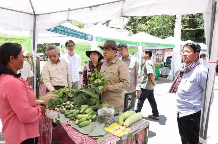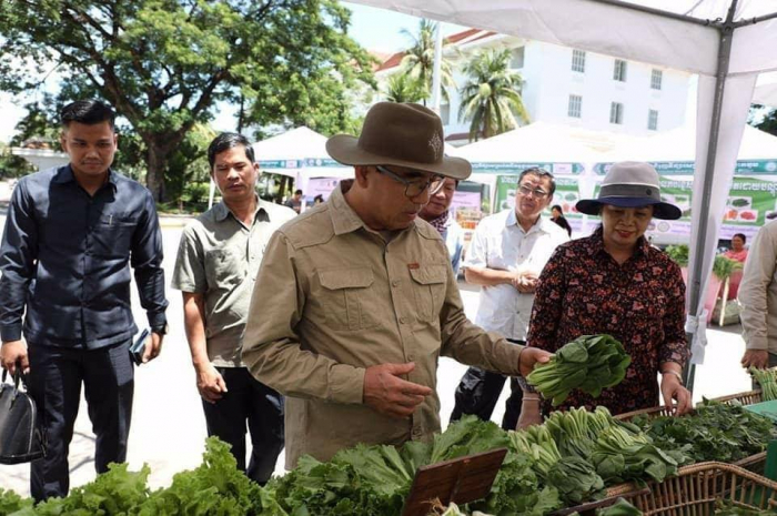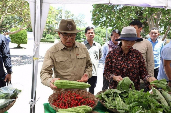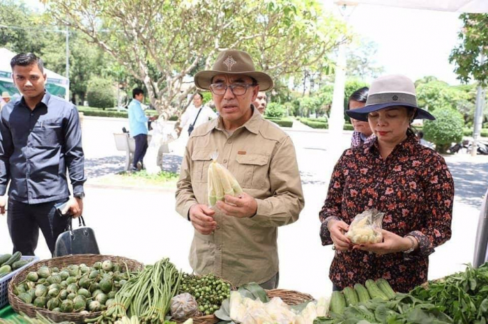 ឯកឧត្តមរដ្ឋមន្រ្តី វេង សាខុន និងលោកជំទាវ ព្រមទាំងសហការី បានឆ្លៀតឱកាសអញ្ជើញចូលទស្សនាការតាំងលក់បន្លែសុវត្ថិភាពនៅផ្សារណាត់ជាប់ដងស្ទឹងសៀមរាប