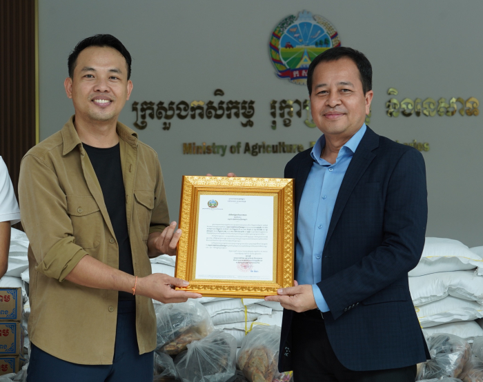 នាព្រឹកថ្ងៃទី១៦​ ខែមករា ឆ្នាំ២០២៦ ឯកឧត្តមបណ្ឌិត សរ ចិត្រា អគ្គលេខាធិការ តំណាងដ៏ខ្ពង់ខ្ពស់ឯកឧត្តម ឌិត ទីណា រដ្ឋមន្ត្រីក្រសួងកសិកម្ម រុក្ខាប្រមាញ់ និងនេសាទ និងជាប្រធានក្រុមការងាររាជរដ្ឋាភិបាលចុះមូលដ្ឋានខេត្តបន្ទាយមានជ័យ បានអញ្ជើញទទួលអំណោយសប្បុរសធម៌ពី អង្គការតុកកែញញឹមកម្ពុជា​ (Smiling Gecko) នូវត្រីខ​ ១០កេស​ សាច់ក្រក​ ៣៥គីឡូ​ សាច់ផាត់​ ៣៥គីឡូ​ មី​ ៥០កេស​ ទឹកត្រី​ ៤០យួរ​ ទឹកសុីអុីវ​ ៤០យួរ​ ត្រីប្រឡាក់​ ១០០គីឡូ​ អង្ករ​ ១,៤​ តោន​ និងម៉ាសុីនបូមទឹក​ ៥គ្រឿង សម្រាប់ផ្គត់ផ្គង់ជូនប្រជាជនភៀសសឹកនៅខេត្តបន្ទាយមានជ័យ។