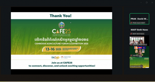 នាថ្ងៃទី២ ខែតុលា ឆ្នាំ២០២៥ ឯកឧត្តម ប្រាក់ ដាវីដ រដ្ឋលេខាធិការក្រសួងកសិកម្ម រុក្ខាប្រមាញ់ និងនេសាទ បានអញ្ជើញចូលរួមកិច្ចប្រជុំផ្សព្វផ្សាយកម្មវិធីវេទិកា និងពិព័រណ៍កសិកម្មកម្ពុជាឆ្នាំ២០២៥...